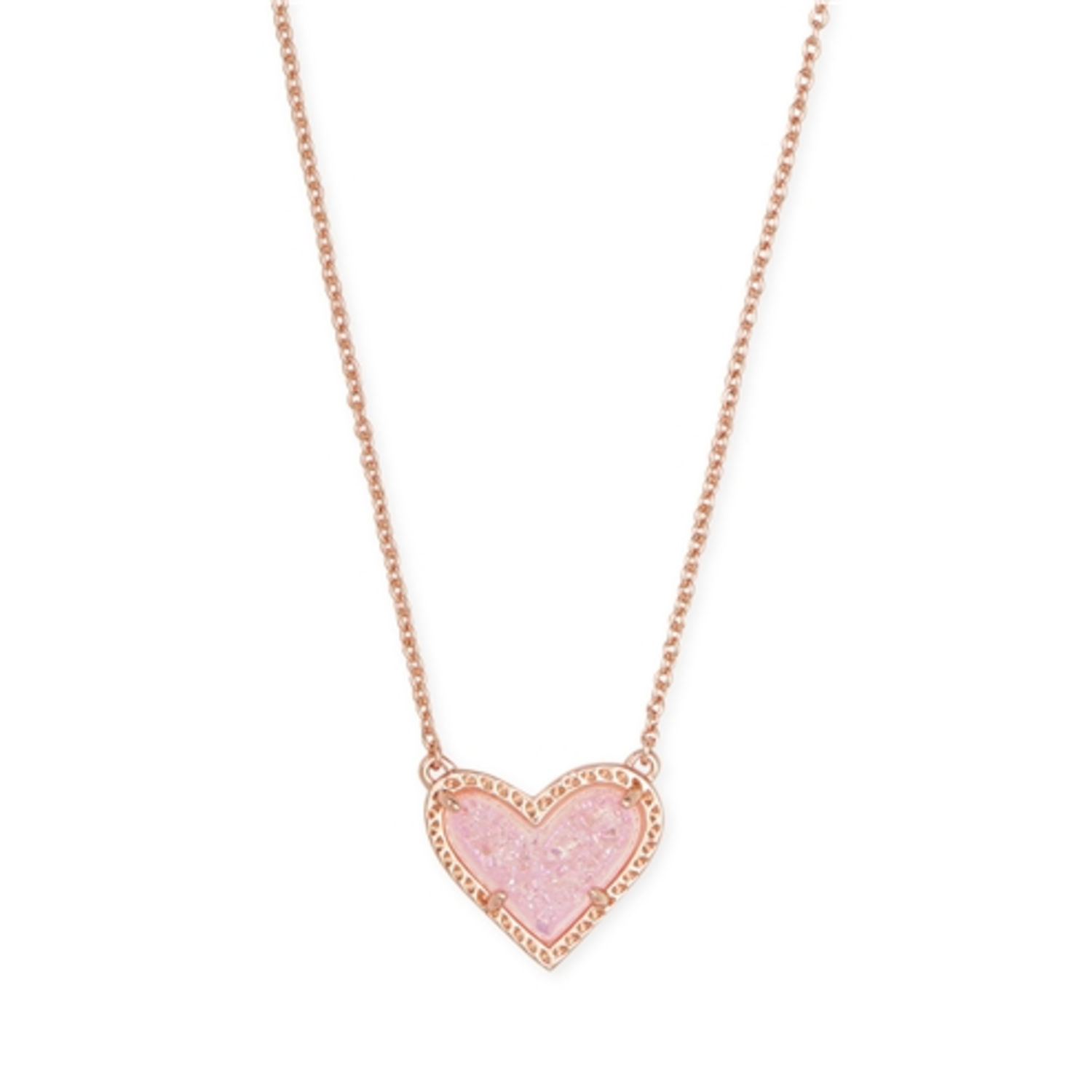ARI HEART SHORT PENDANT NECKLACE, ROSE GOLD PINK DRUSY