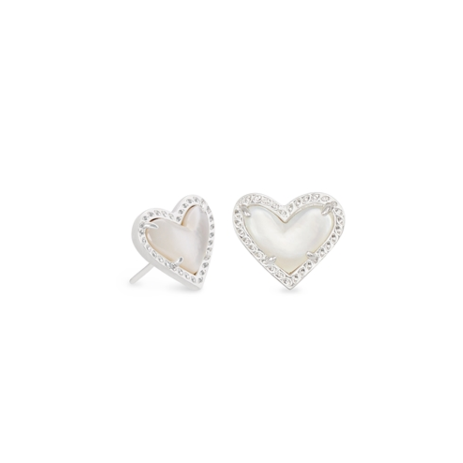 This stunning Ari Heart Stud Earrings in Rhod Ivory Mop adds that little something extra to your look with its playful asymmetrical design. Materials: Rhodium Plated Brass, Item dimension: 0.49 l x 0.57 w.