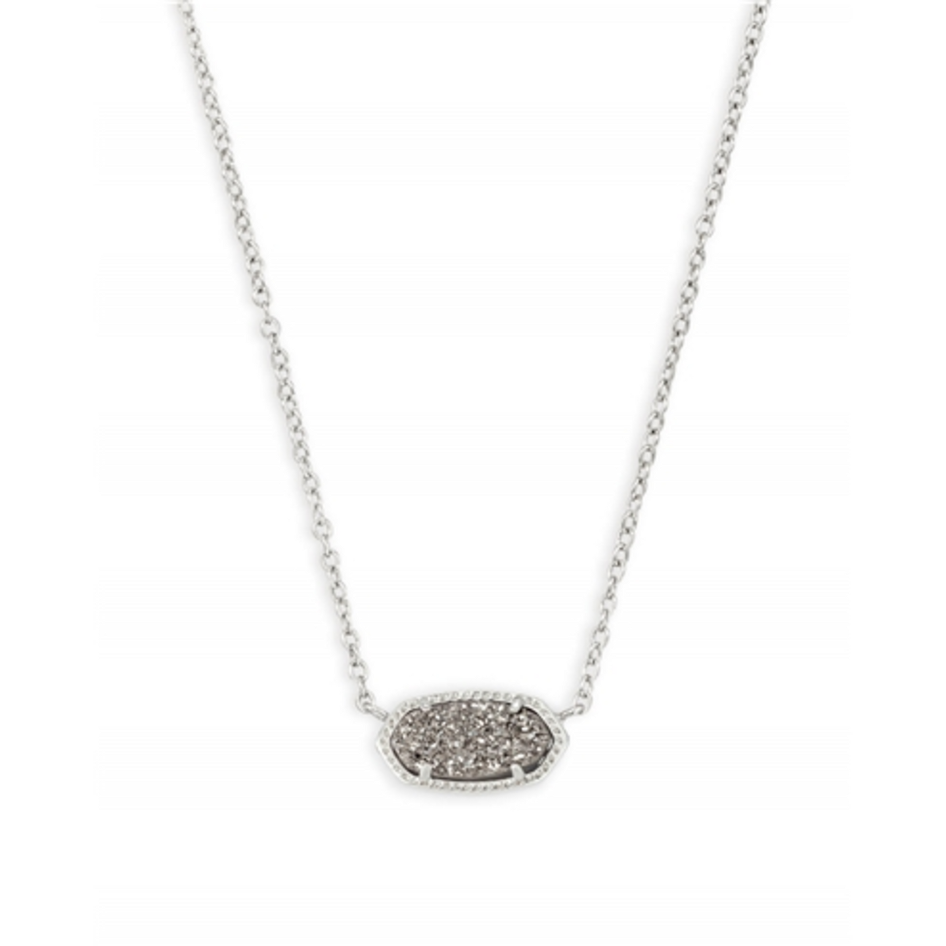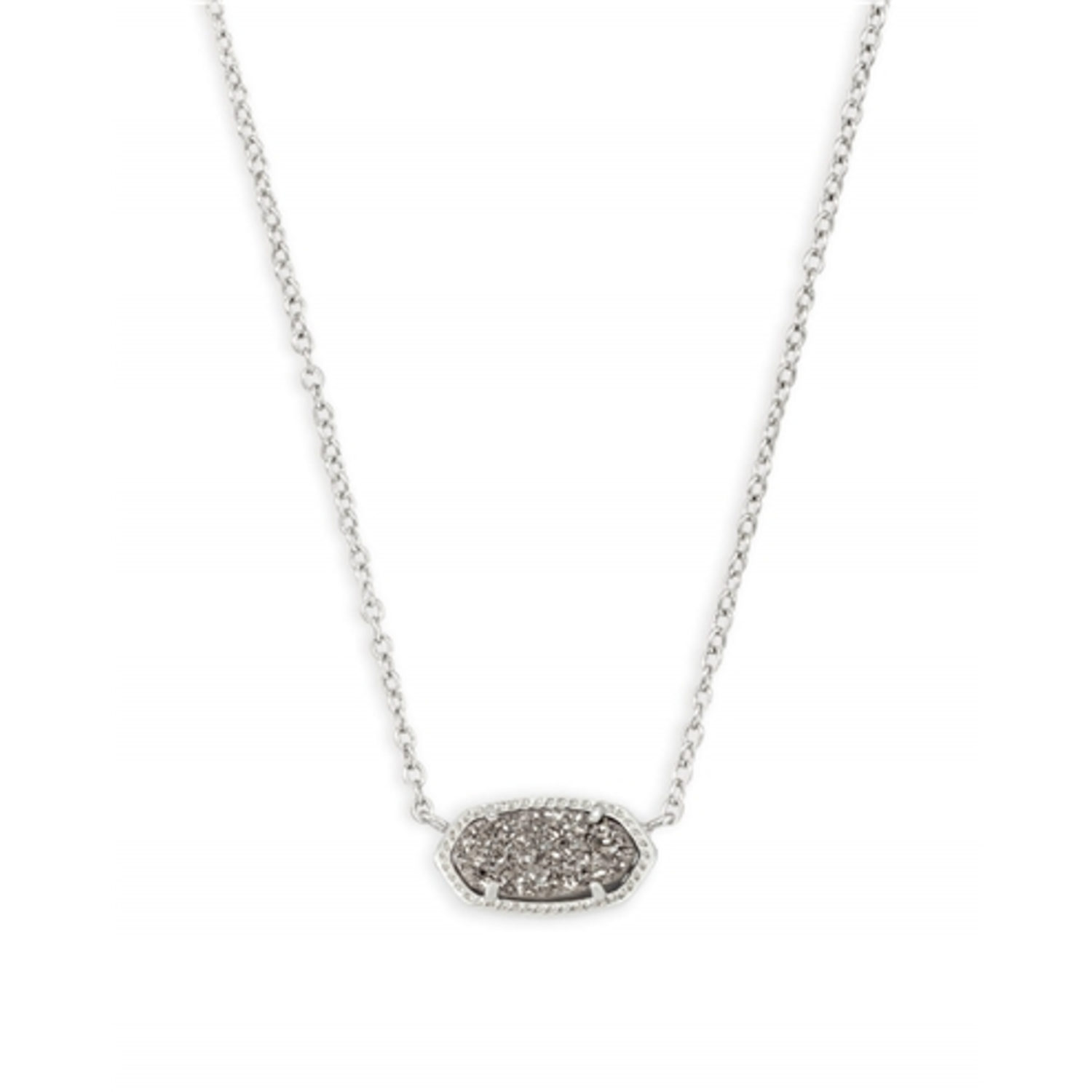 This gorgeous looking with dainty stone and delicate metallic chain combine to create the Elisa Silver Pendant Necklace in Platinum Drusy, your new favorite wear-anywhere accessory. This pendant necklace can be paired with any look, providing that extra touch of timeless style. Rhodium Plated Over Brass Size: 0.63"L x 0.38"W stationary pendant, 15" chain with 2" extender. Lobster claw closure. Material: Platinum Drusy