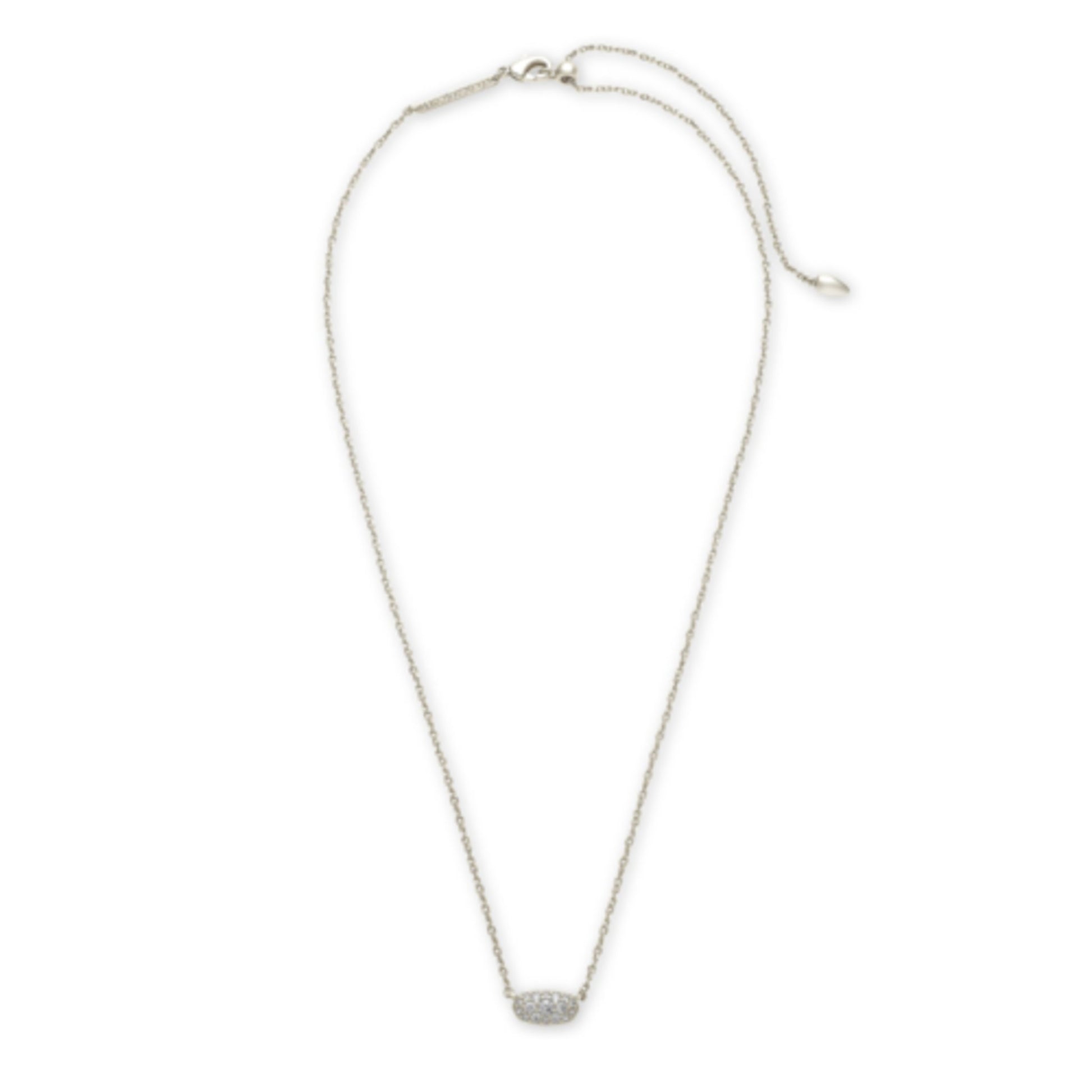 Our minimalist icon, dressed in White Crystal. The Grayson Silver Pendant Necklace is a sophisticated sparkle for your next event, or every day. 19" Chain, 0.70"L x 0.38"W Pendant. Metal: Rhodium Over Brass.