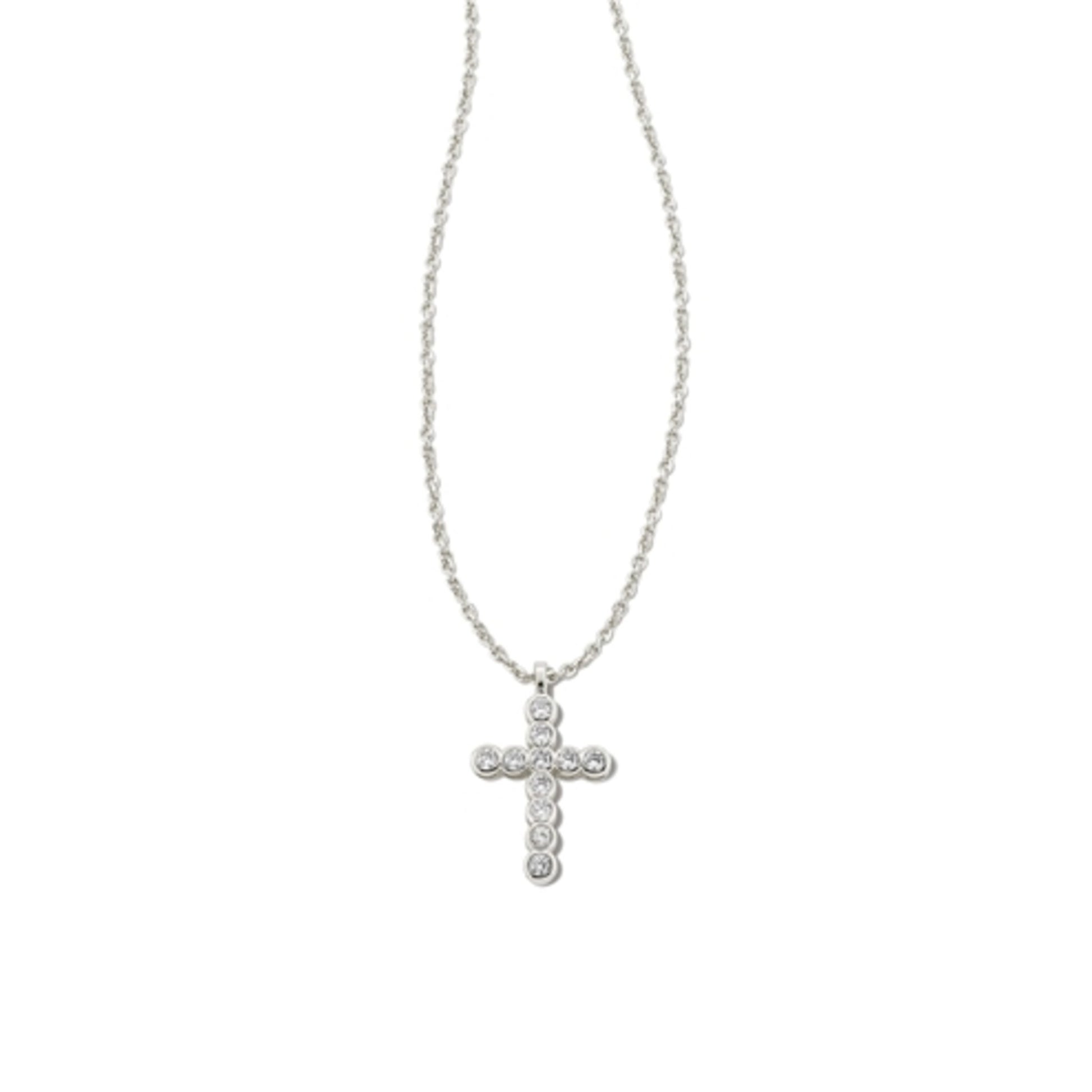 CROSS CRYSTAL PENDANT NECKLACE, SILVER WHITE CRYSTAL