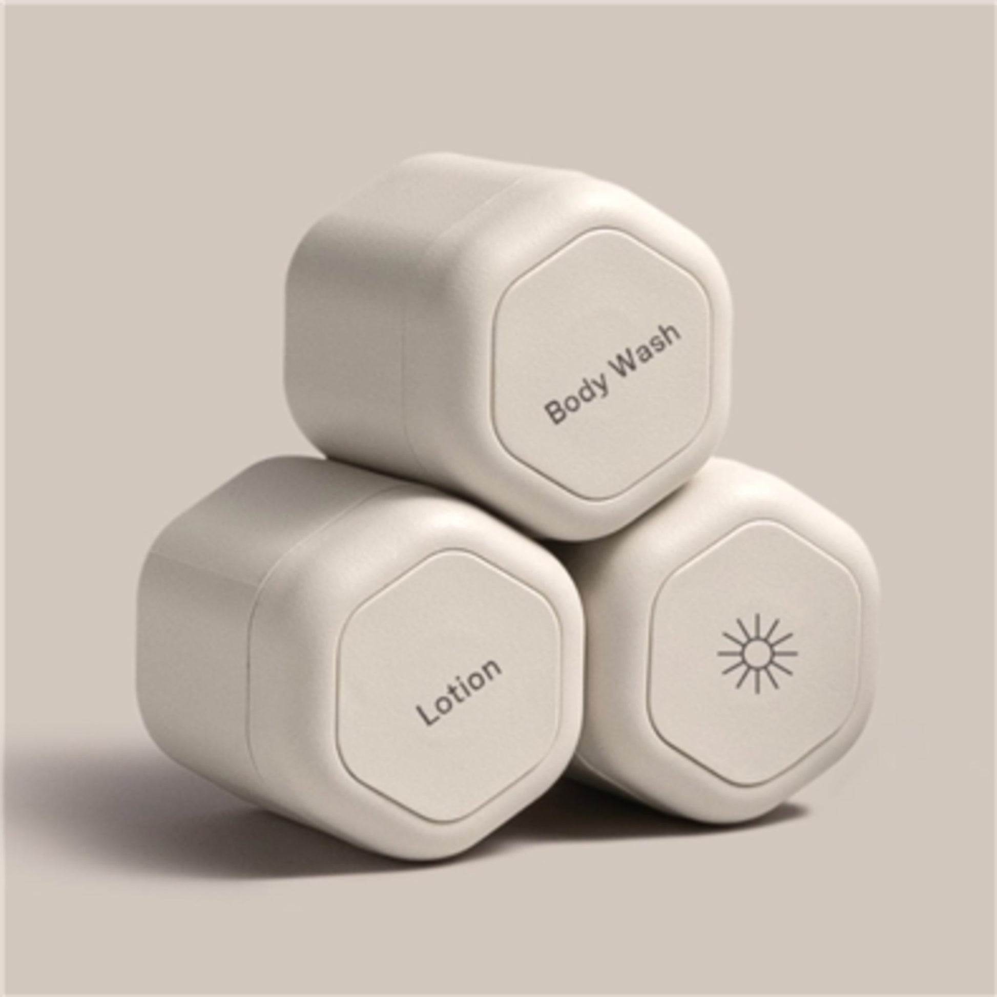The perfect bundle for anyone that wants to get away for a week. This set features three Medium Capsules (1.32 fl oz each) with a Body Wash label, Lotion label, and sun-icon label. The Medium is the perfect fit for weekend to week-long trips.(Color :Sand). TSA Approved.
