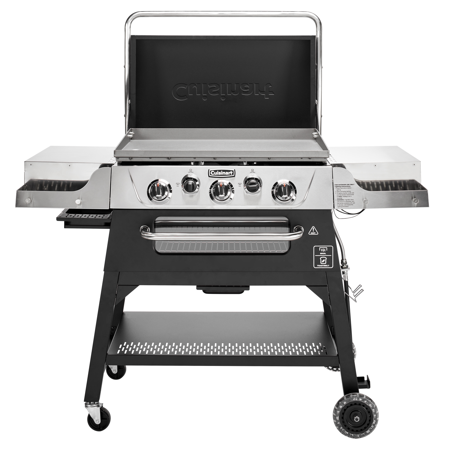 Elevate your outdoor cooking game with the 28" Outdoor Griddler™, your new go-to for backyard meals. This 2-in-1 Griddle & Broiler combo gives you the best of both worlds—flat-top griddle cooking, plus high-heat, open-flame searing from the broiler for that perfect char. The griddle offers a spacious 504 sq. in. surface, fitting up to 24 burgers at once, so you’re always ready for the family or a crowd. Beneath the griddle, the broiler cabinet features a 3-level adjustable cooking rack and a viewing window, allowing you to sear, roast, toast, or melt with ease—bringing that signature flame-kissed taste to every dish. The Broiler Baffles system (patent-pending) directs heat downwards when closed, providing high-heat searing for steaks, roasting, melting cheese, and more. Open the Baffles to release heat for toasting, warming, or melting. Both the griddle and broiler share the same fuel source, maximizing efficiency with no extra fuel. Designed for ultimate convenience, the Griddler™ includes integrated condiment caddies on the side shelves for easy access to sauces and spices, along with a paper towel holder and trash bag holder to streamline prep and cleanup.