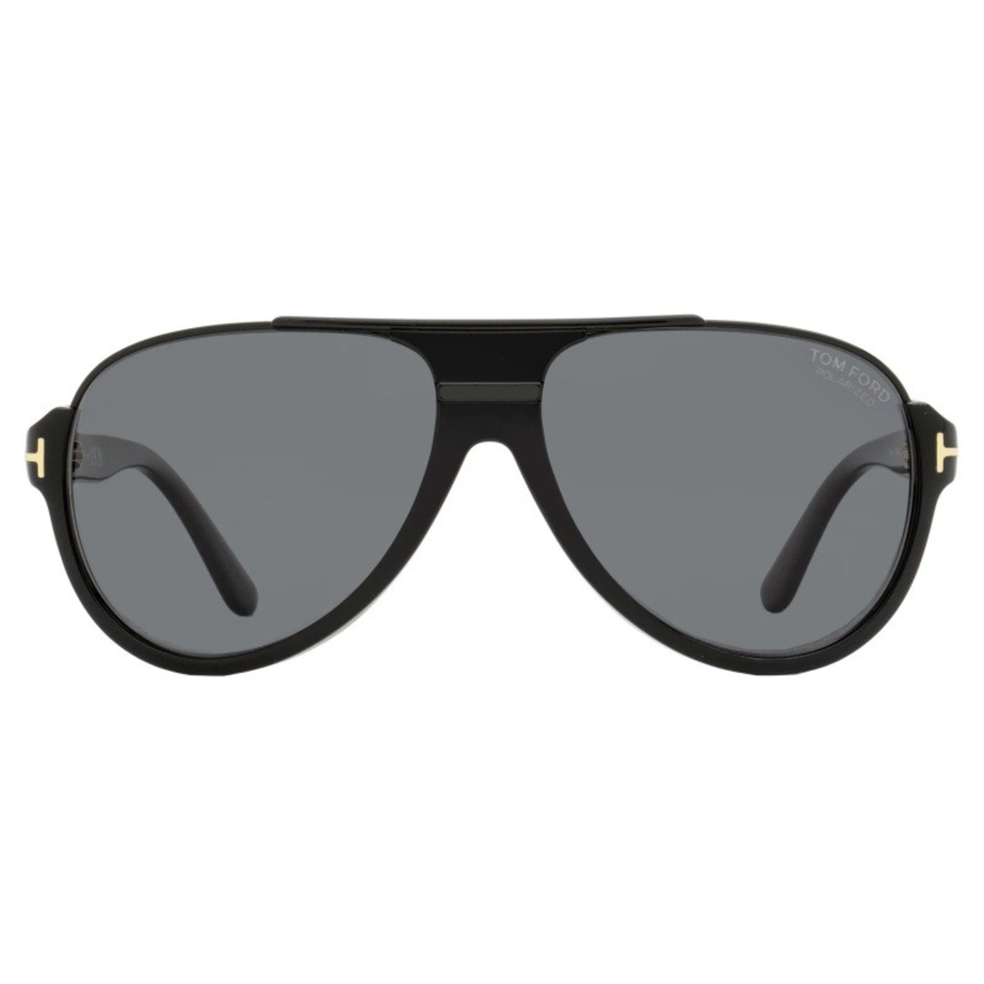 Tom Ford Sunglasses. Series Dimitry. Series number: FT0334. Color code: 01D. Shape: Pilot. Lens Width: 59 mm. Lens Bridge: 14 mm. Arm Length: 130 mm. Polarized. Frame Material: Acetate; Metal. Frame Color: Shiny Black. Lenses Type: Polarized Smoke.