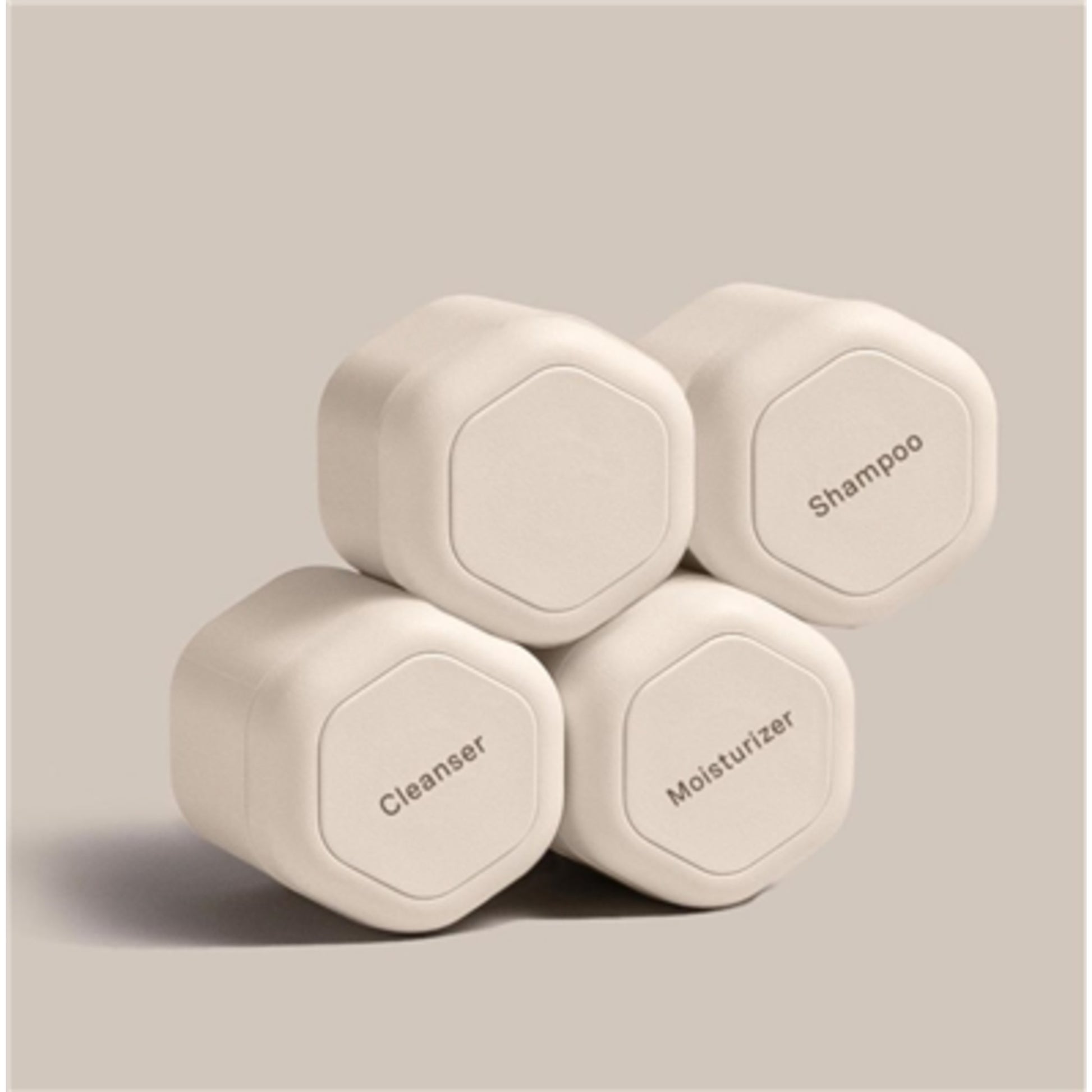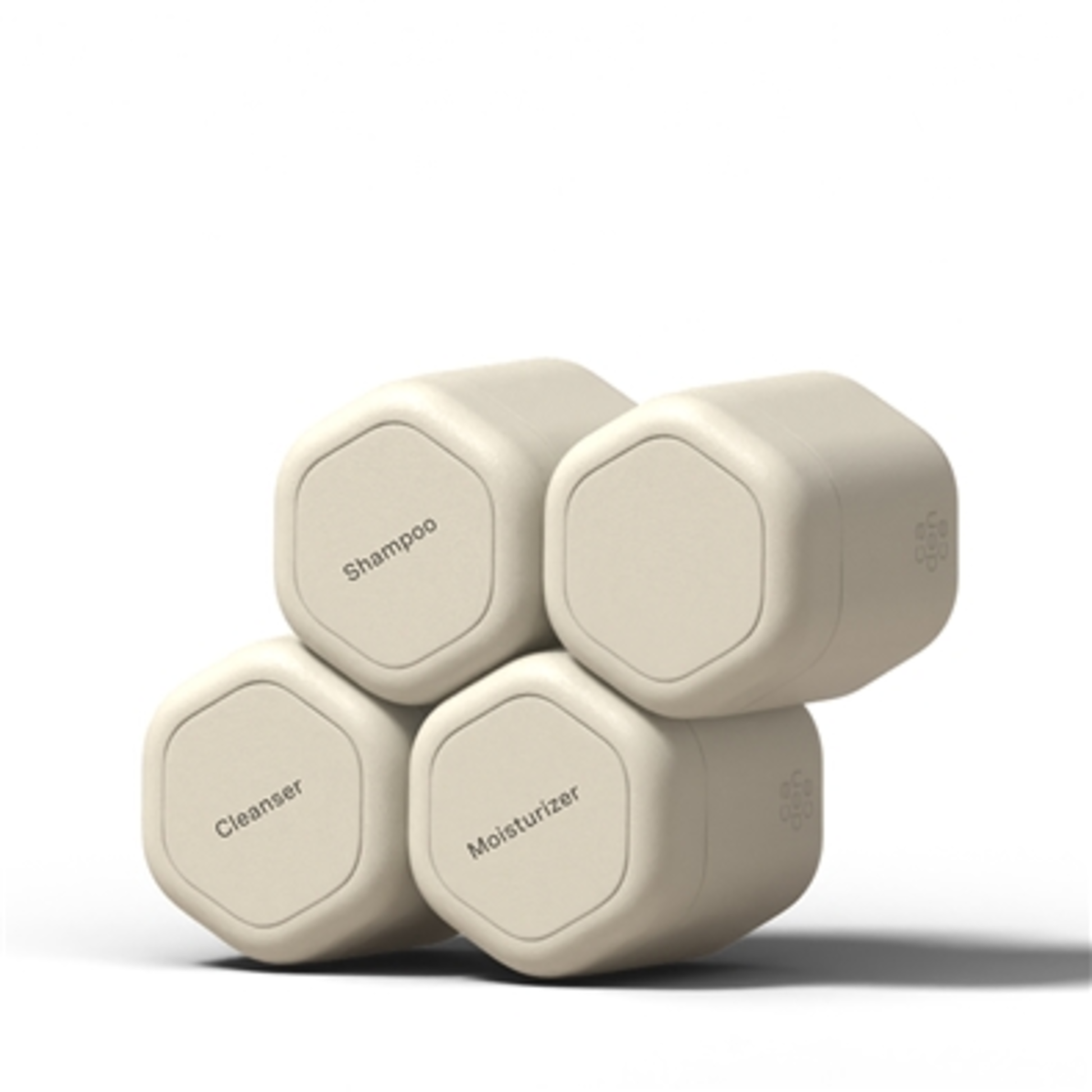 The perfect gift for anyone that likes to travel for a few days to a week at a time and wants to bring the essentials along. This set features four Medium Capsules (1.32 fl oz each) with a Shampoo, Moisturizer, Cleanser, and blank label so you can maintain your routine at a home away from home.(Color :Sand). TSA Approved.