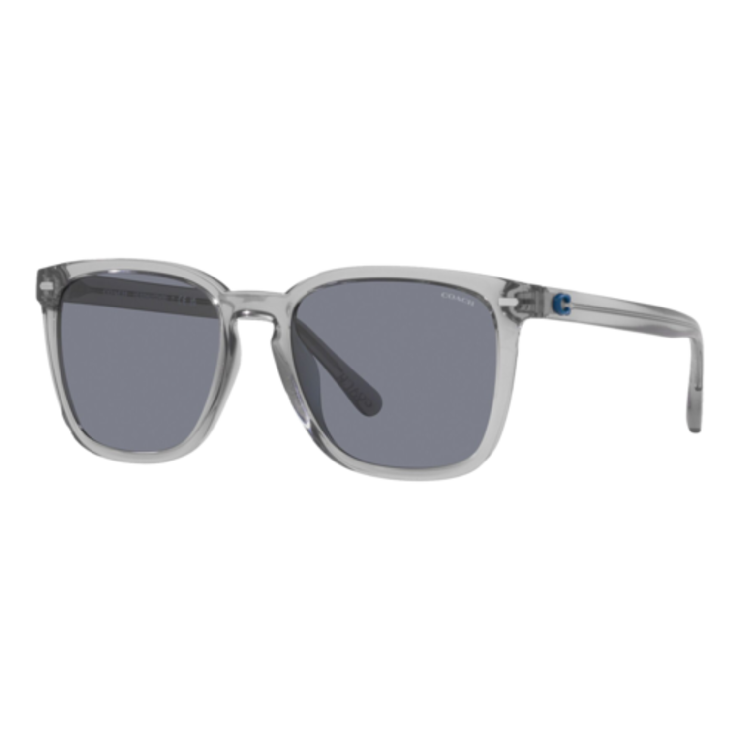 Our Signature adds style Coach heritage style to these classic square frames. Lightweight and durable, the lenses offer complete protection from UVA and UVB rays - making them perfect for every day. Eye size: 56; Frame: Transparent Grey; Lens: Dark Blue Solid; Lens Material: Standard Plastic