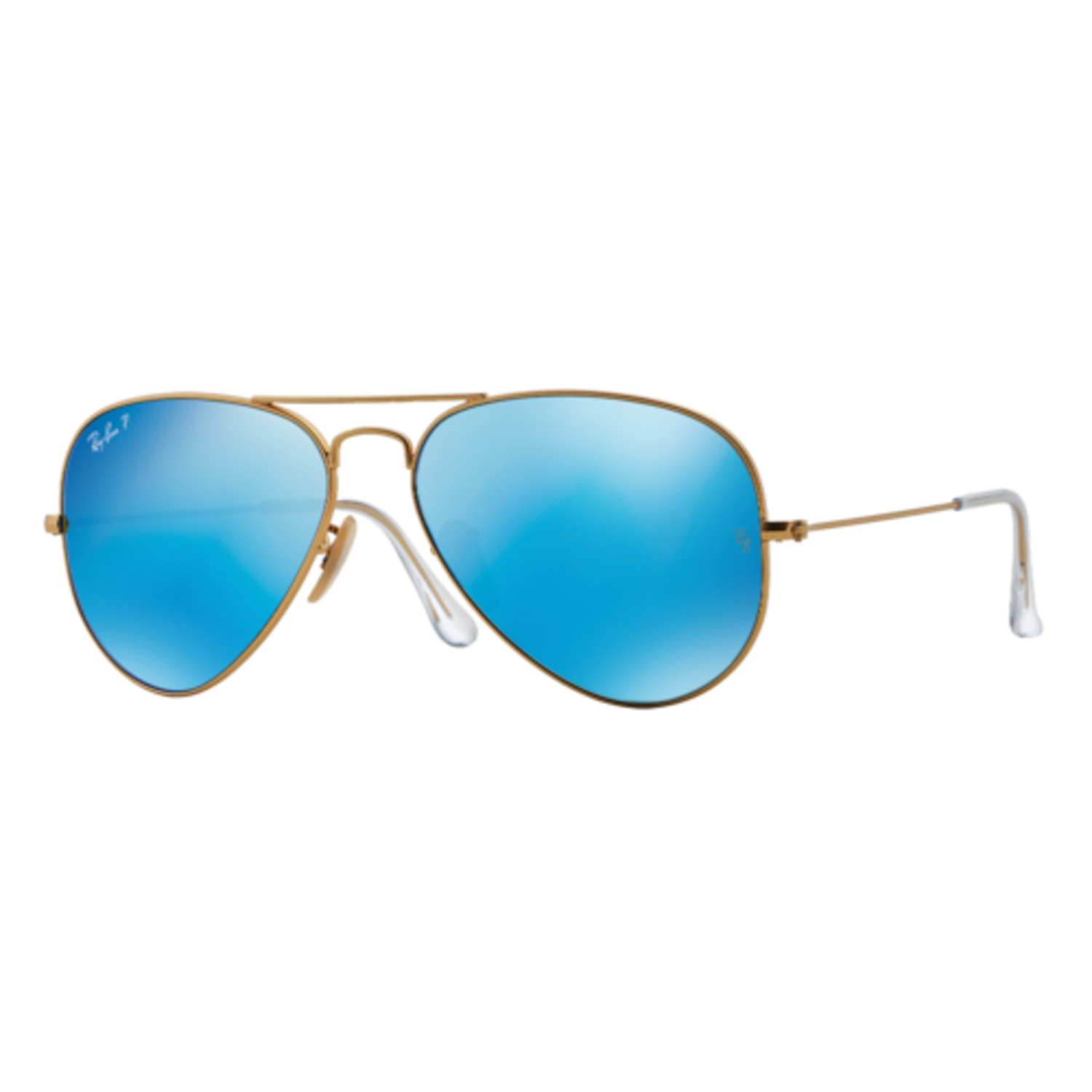 Reflect your style with Ray-Ban Aviator Flash lens sunglasses, one of the most iconic sunglass models in the world. Ray-Ban RB3025 Aviator Flash Lenses reinvented the standards of the market with its unique teardrop shape and flash lens combination. Wear this Aviator style in a variety of colors, to ensure you never go unnoticed. Eye size: 58; Frame: Gold; Lens: Polarized Blue Flash; Lens Material: Crystal Polarized Glass