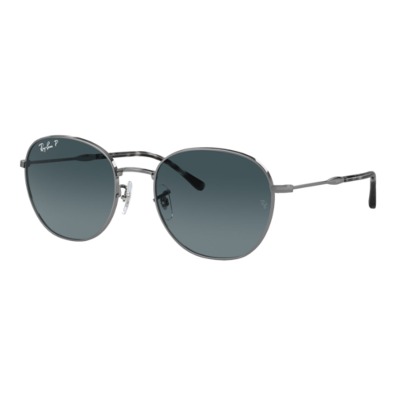 Designed in a round shape, these Ray-Ban sunglasses are rendered in a wire construction. Eye Size: 55; Frame: Polished Gunmetal; Lens: Polarized Blue Gradient; Lens Material: Polarized Glass