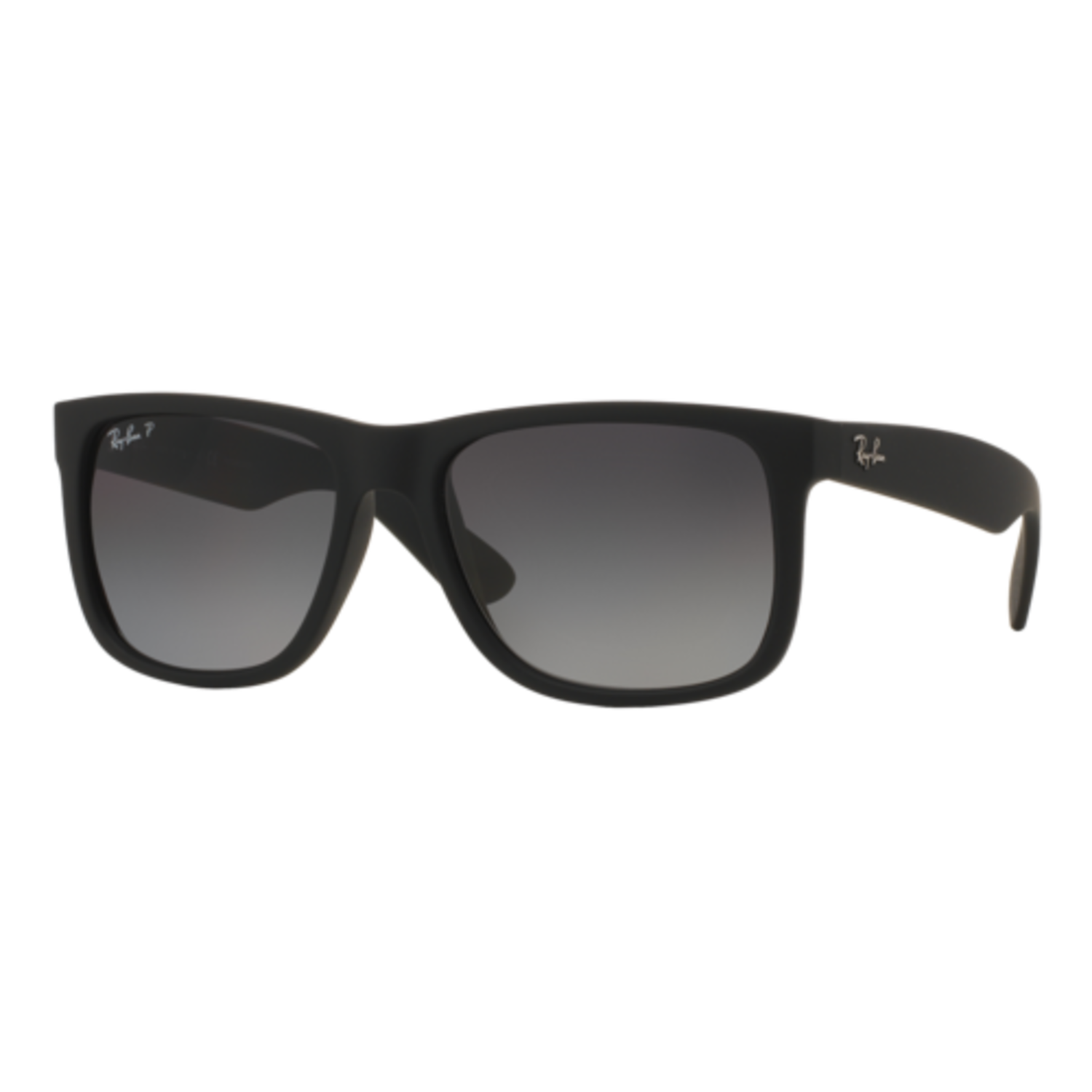 One up your game with the Ray-Ban Justin, one of the coolest looks in the Ray-Ban collection now with polarized lenses. Inspired by the iconic Wayfarer model, Justin offers a bold rubber finish to give a special touch to your style. Look as good as you see on this unique upgrade to a Ray-Ban. Eye size: 55; Frame: Black; Lens: Polarized Grey Gradient; Lens Material: Polarized Plastic