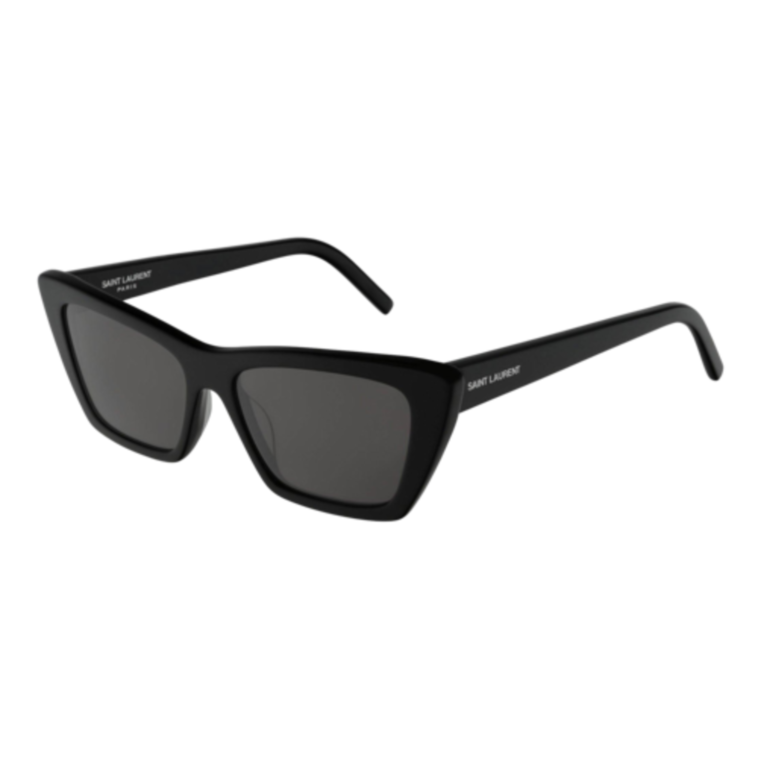 Elevate your style with the exclusive Saint Laurent Mica sunglasses. These stylish shades feature a solid grey lenses, adding an element of sophistication to any outfit. The black shiny frame and cat eye shape exude timeless elegance and allure, while the iconic Yves Saint Laurent branding on temples adds an extra touch of luxury. Crafted from premium materials, these shades offer both comfort and durability for all-day wearability. Eye size: 53; Frame: Black; Lens: Grey; Lens Material: Standard Plastic