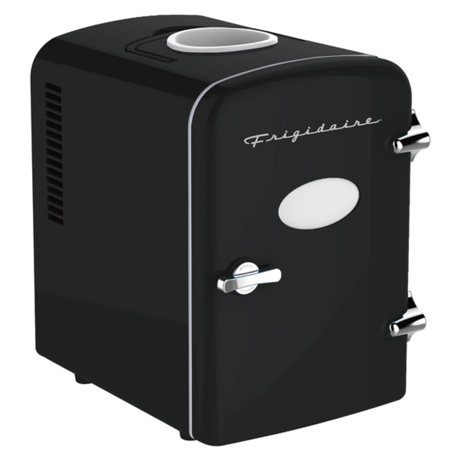 Frigidaire EFMIS171-BLACK 6+1-Can 48-Watt Retro Mini Portable Fridge with Top-Mounted Active-Cooling Can Holder (Black)