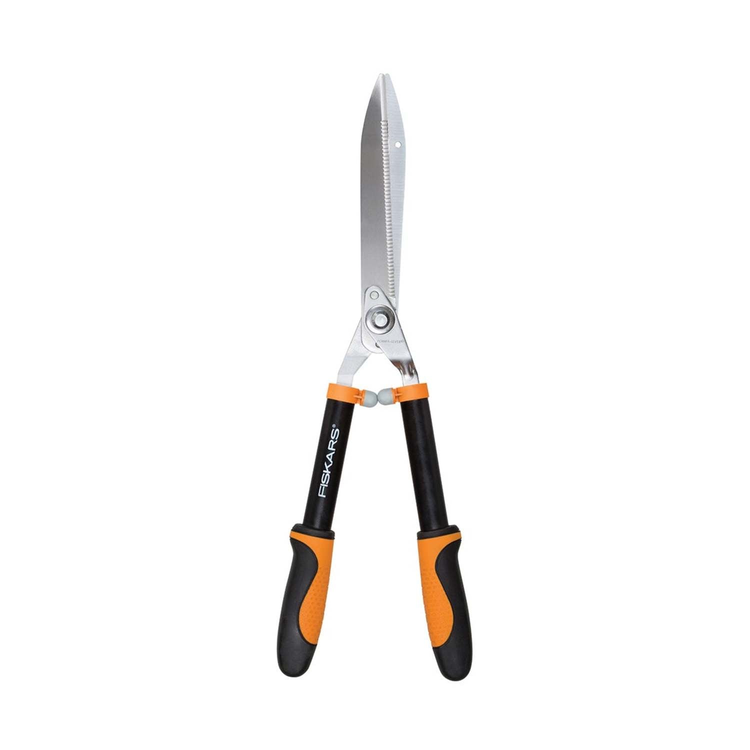 Get up to two times more cutting power. Power lever technology doubles the cutting power of traditional single pivot hedge shears. Trim and shape hedges and decorative shrubs. Serrated gator blades grip branches and stems for clean cuts. Self sharpening design. Hardened precision ground steel blade stays sharp through heavy use. Low friction blades cut smooth and reduce gumming. Enhanced rust resistant performance. Soft grip for comfort and control. Blade length: 10". Total length: 23". Manufacturer lifetime limited warranty.