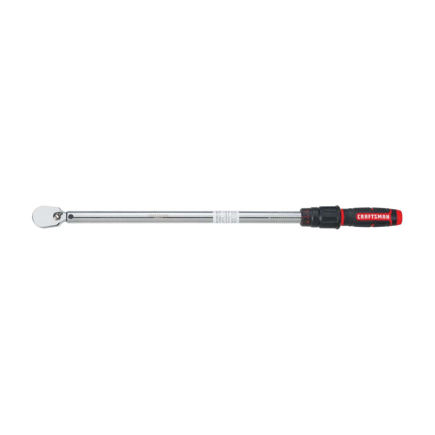 Has a hassle-free locking feature that adjusts quick and easily. Bi-material handle for comfort and grip. Full polish chrome finish. Durable case for portability or storage. Scales stamped into housing show inch and metric torque settings. Provides 50-250ft-lbs of torque. Meets or Exceeds ASME specifications. 1/2" Drive size.