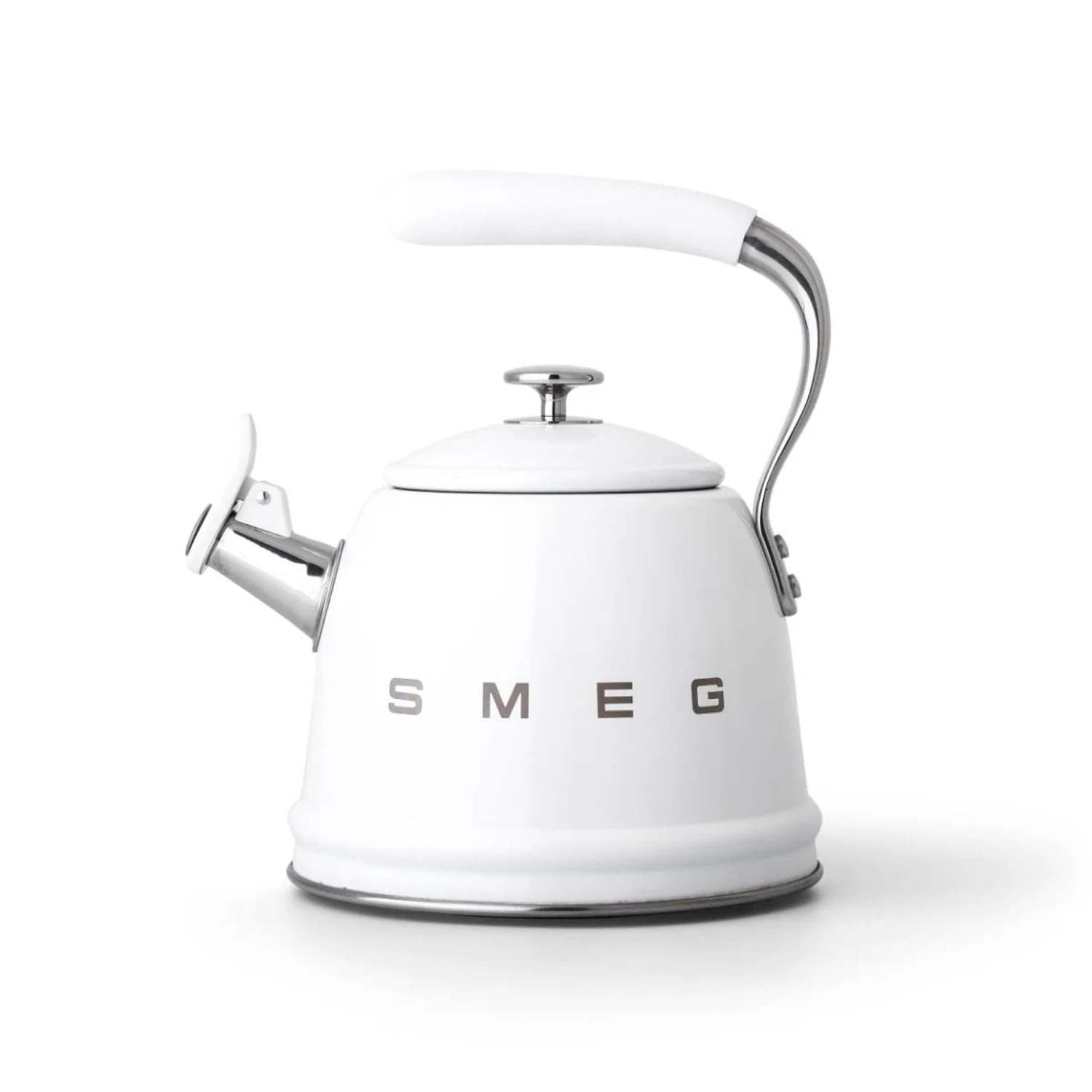 The Smeg Whistling Kettle honors the simpler way of life. A contemporary tea kettle that is built to stand the test of time. Stainless steel body and lid with a glossy finish. Steel handle with silicone grip. Single-tone whistle with drip-free spout. Removable lid for easy cleaning. Water fill level indicator. Compatible on induction gas ceramic and electric stovetops. 2.4-Quart capacity.