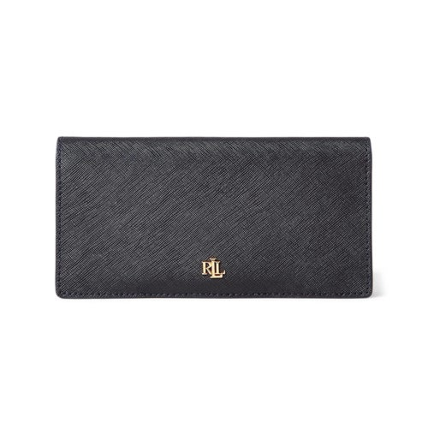 The slim wallet offers a beautiful finish and ample storage. Exterior features signature "LRL" logo on the front. Zip pocket on the back exterior. Interior has 15 card slots and 4 slip pockets. Leather shell with crosshatch texture and polyurethane trim. Snap closure. Dimensions: 3.75"H x 6.75"L x 0.75"D.
