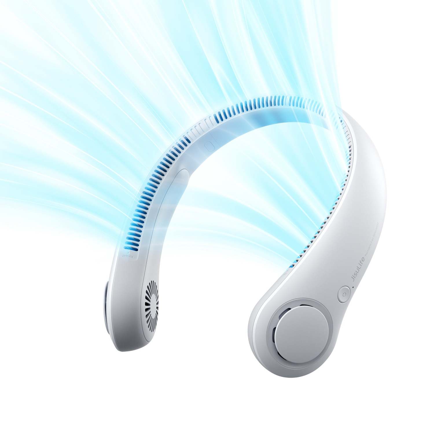 A novel neck fan that gives wind without waving your hands. Designed without wings so it can be safely used by children. 360-Degree surrounding air movement supported with brushless motor. Up to 4 to 16 hours of runtime on a single charge. 5 Speeds give user more airflow choices. Low noise design down to at least 25 dB. Made of anti-greasy ABS and silicone material. Dimensions: 7.7" x 7.7" x 2.3". Includes USB-C charging cable.