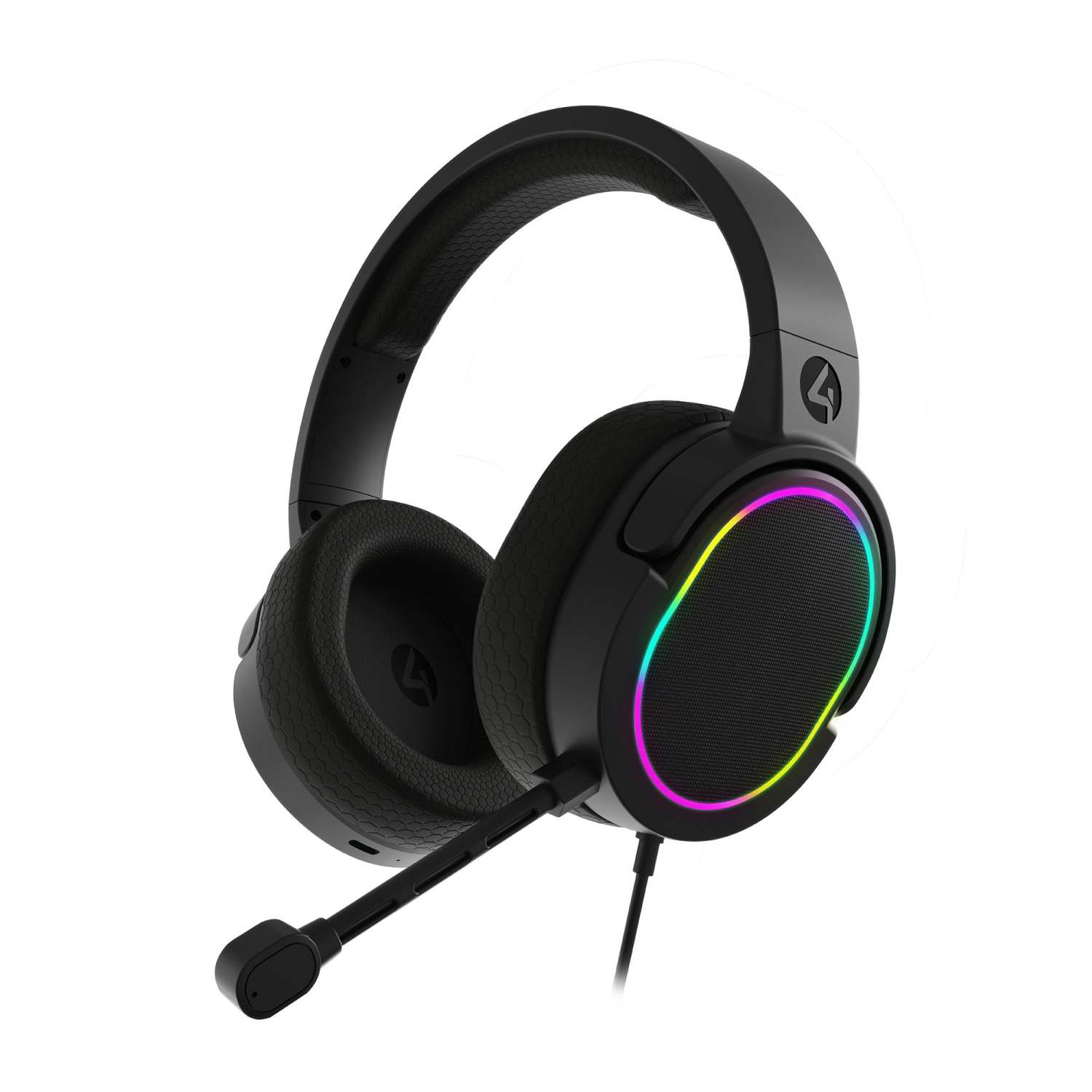 Compatible with XBOX One XBOX Series X/S PS4 PS5 Nintendo Switch PC Mobile & Tablet. 3.5mm Jack connection. Premium 40mm speakers with Air-Flow Chambers and pin-point mic. Get immersive game audio and clear chat during gaming sessions with friends. Fully adjustable headband and flexible lightweight frame. Over-ear flexible cushioned leatherette ear cups to help block out distractions. Light-up LED ear-cup design featuring 5 changeable RGB animated effects. Recharge the lights with the included USB cable.