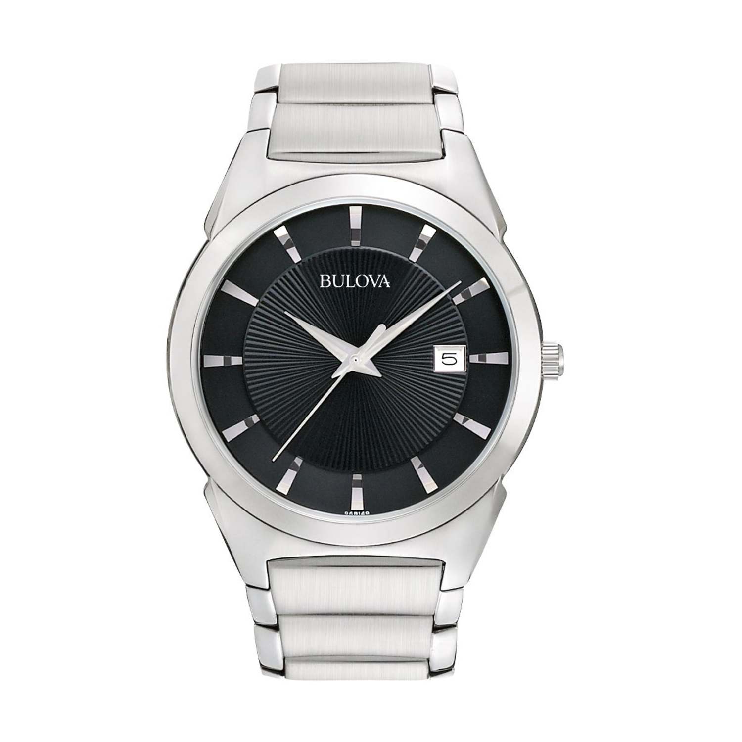 Numberless silver dial with black face. Quartz movement. Mineral crystal with a stainless steel case. Stainless steel band. Features second hand and date. Water resistant up to 30 meters. 38mm Diameter. 7.5mm Thickness.