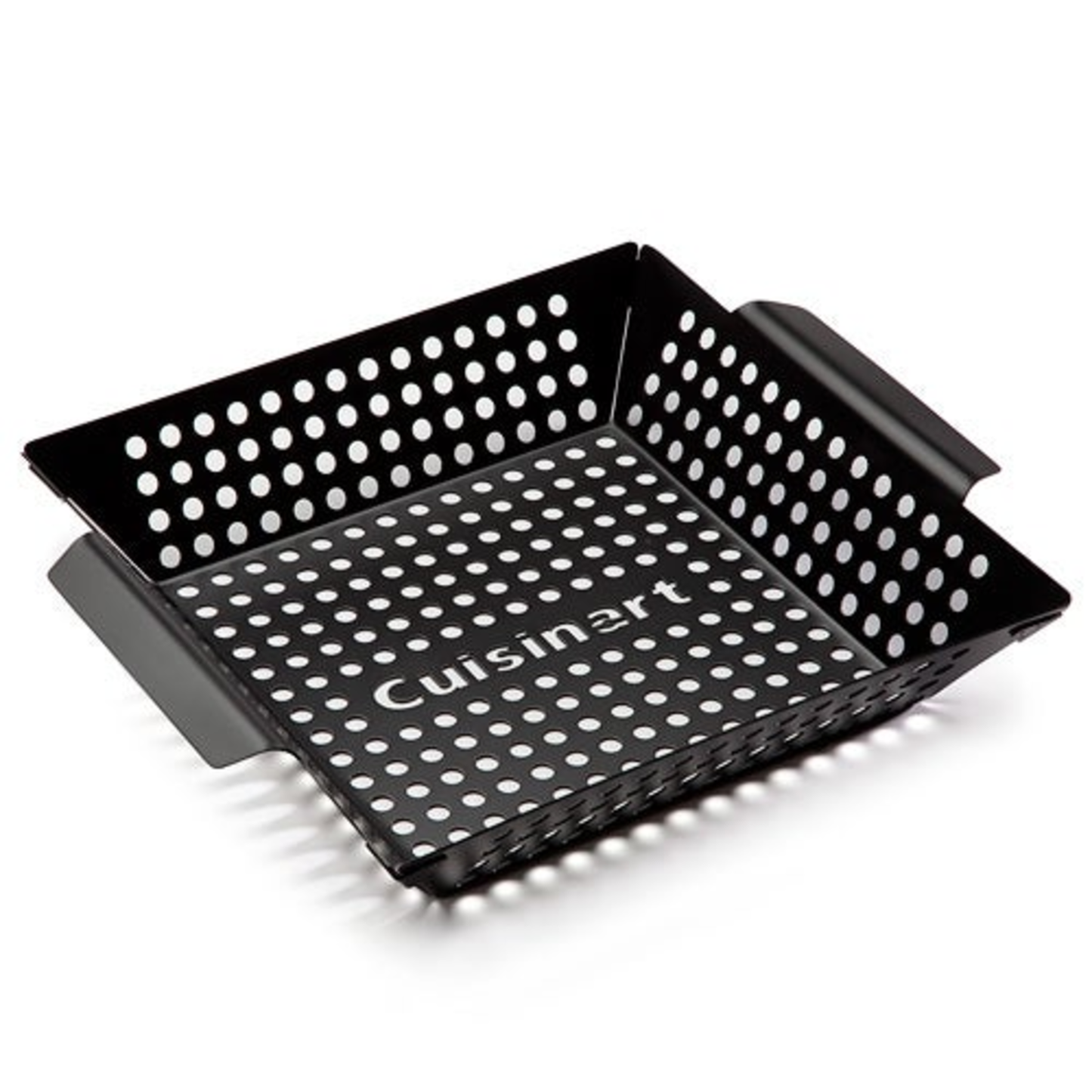 Nonstick grill wok with 10" x 10" cooking surface. Raised sides to hold food in. Perfect for any gas or charcoal grill. Perforated metal for real grill experience. Recommend hand wash with nylon wood or bamboo tools. California AB 1200 - This product contains PFAS for its nonstick properties.