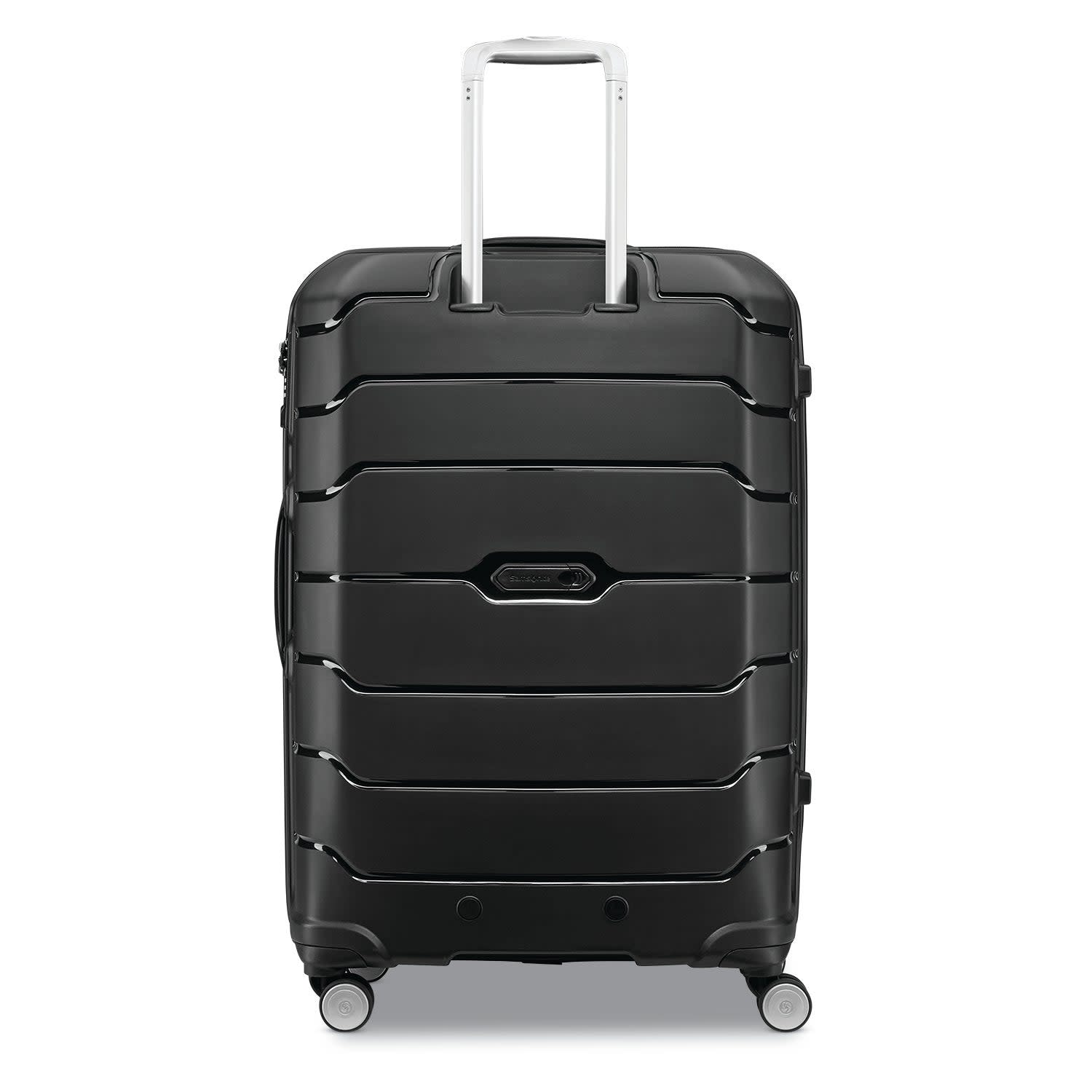 Freeform was created with strength and maneuverability in mind. Hardside Polypropylene mold is flexible and moisture resistant. Four spinner wheels move in 360-degrees. Double wheel design. Retractable handle locks in place. Interior cross straps secure luggage contents. Features a TSA compatible 3-dial combination lock to secure items. Expandable up to 2" to add more carrying space. Built-in ID tag and recessed metal logo. Dimensions: 31.1" x 20.95" x 13.78".