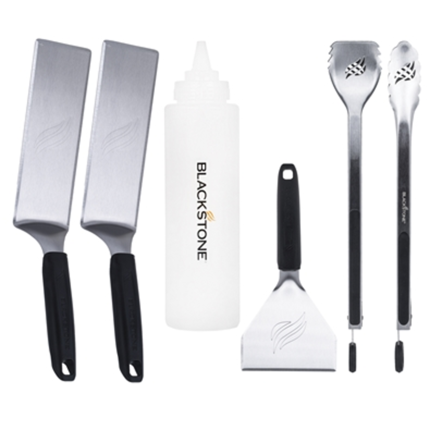 The Deluxe 6-Piece Toolkit has everything you could want to satisfy your griddling needs. This kit includes two stainless steel long spatulas, an angled scraper, two sets of tongs, and a 32oz squeeze bottle. With this kit you can cook just about anything you can imagine! Get your Deluxe Toolkit today!