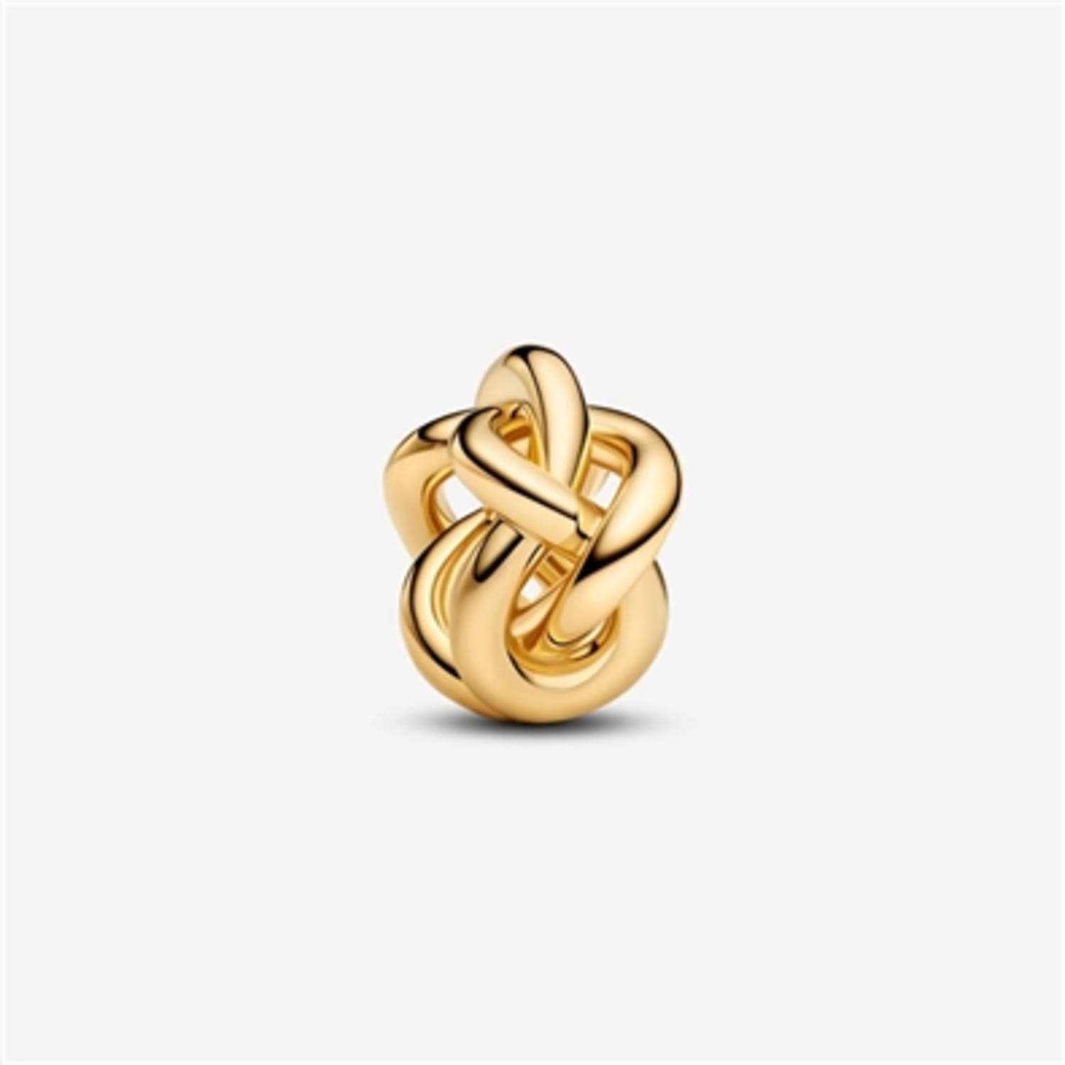 Add a symbol of forever to your collection with the Infinity Knot Charm. This 14k gold-plated charm is shaped like an infinity knot, a shape that represets connection, resilience and the strength to hold onthrough life's many twists and turns. Beyond bringing a three-dimensional, architectural touch to any look, this charm is a reminder of our infinite ability to adapt and bounce back from any challenge – as strong as an infinity knot.