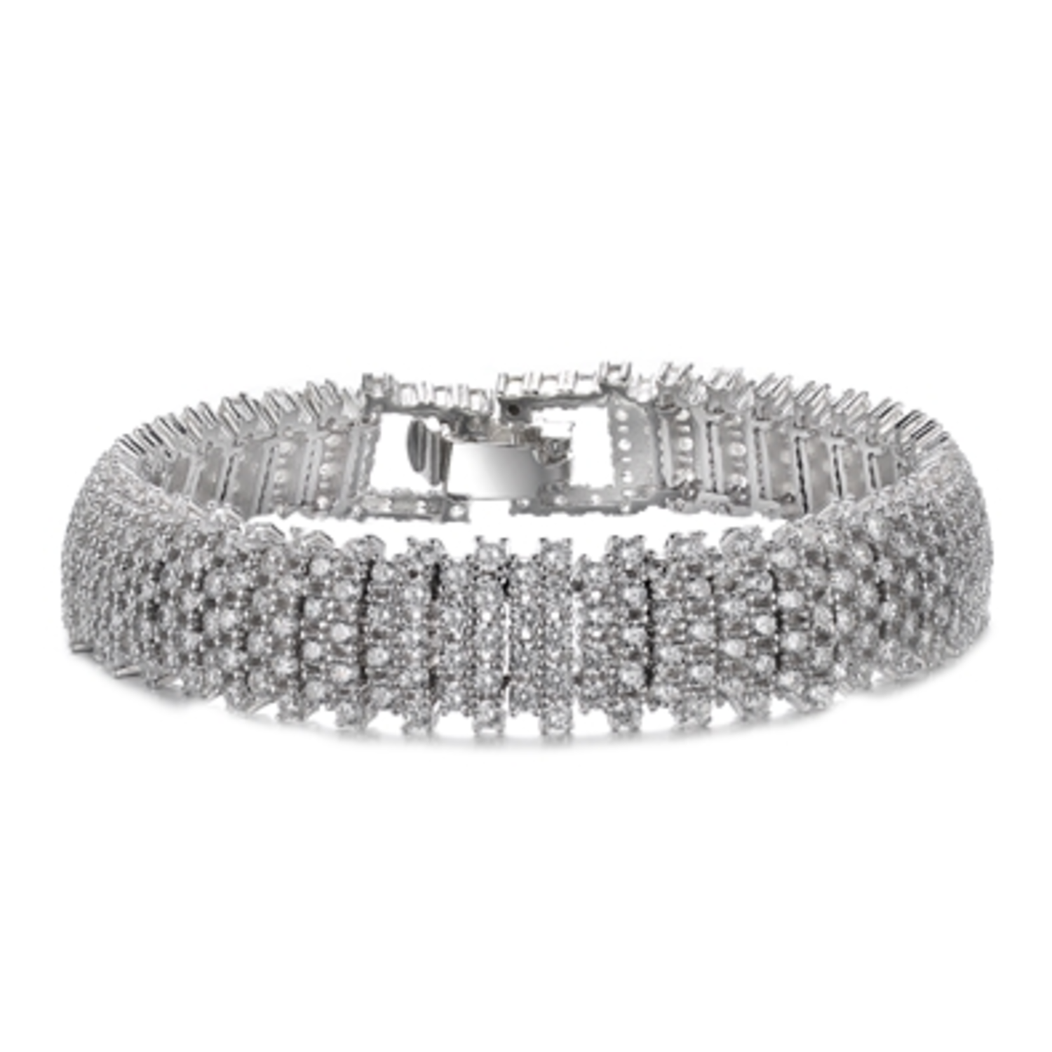 This Elegant White gold plated Link Bracelet boasts timeless elegance. The Link Bracelet features clear round brilliant, simulated diamonds in shared prong settings. Crafted of White Gold Plated and it is secured with box clasp. Exquisite piece of jewelry.