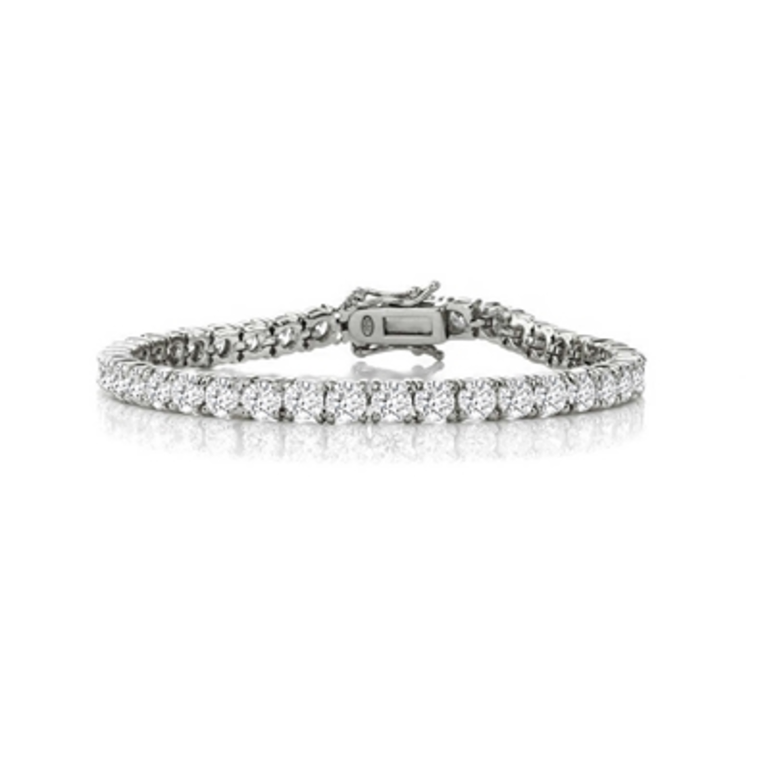 WHITE GOLD-PLATED CZ TENNIS BRACELET, CLEAR, 7.25