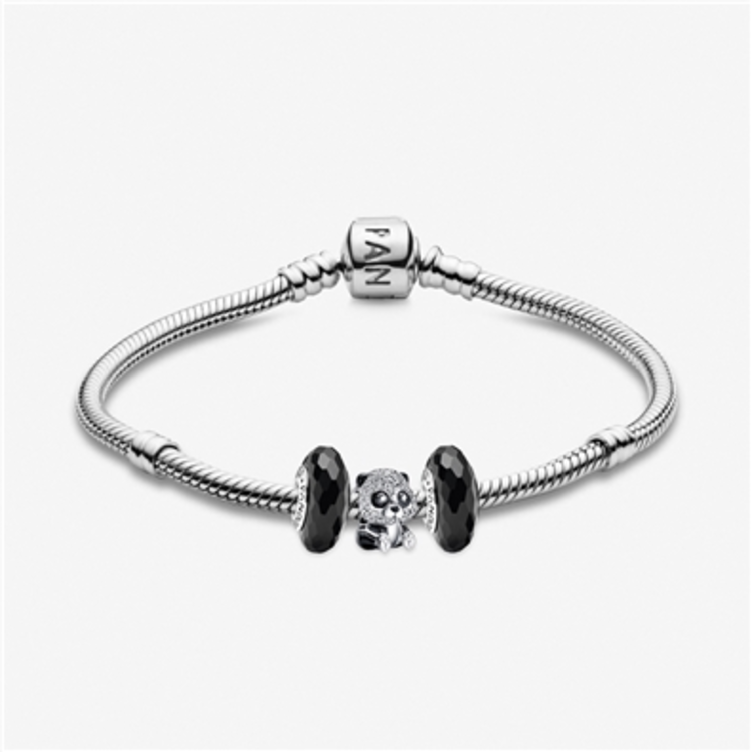 Reconnect with nature and welcome a new spring season with our Sparkling Cute Panda Bracelet. Inspired by the beloved Giant Panda, this symbol of power and wisdom sparkles in brilliant-cut clear cubic zirconia and shiny black enamel surrounded with Black Faceted Murano Glass Charms. The panda's oversized head and tilted expression add an extra dose of personality to our cuddly friend. Wear our panda as a reminder to stay wild at heart.