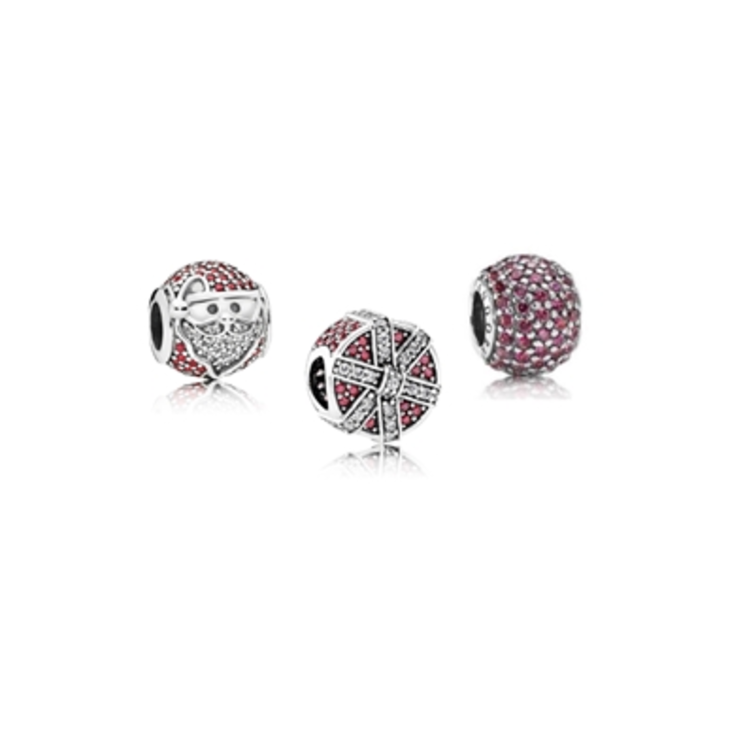 All that glitters is not gold, sometimes it's rich red stones and sterling silver! This trio of charms is perfect for those who are festive and those who are glamorous. Includes a Pave set Santa charm, a red Pave set charm, and an ornate gift box with red and silver sparkling details. The perfect gift for someone who has it all (on their Pandora bracelet!)