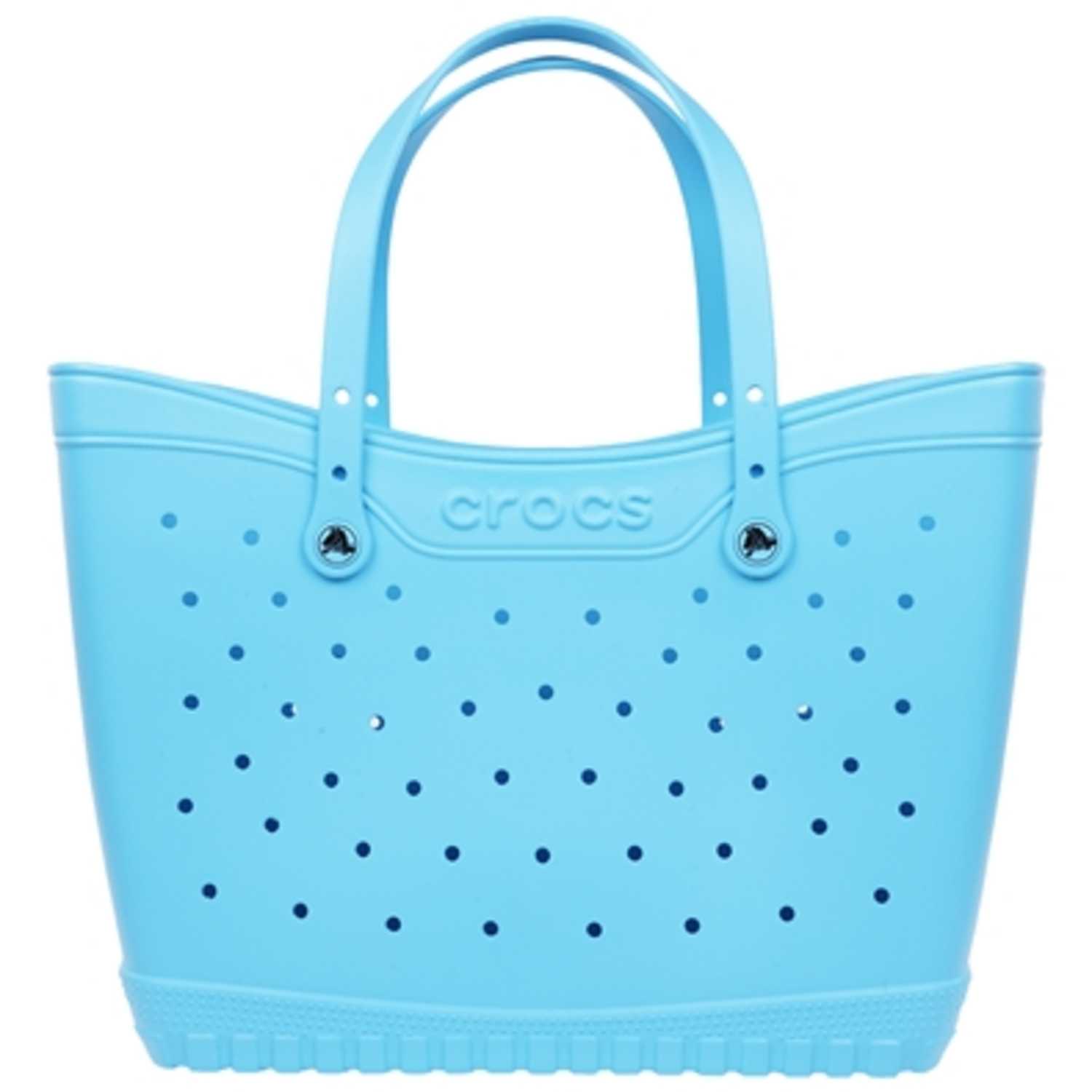 Why settle for an ordinary tote when you can make a bold statement with one that's truly your own? The Crocs Classic Large Tote is your ultimate carry-all for beach days, poolside essentials, park outings, or any adventure that calls for space and style. Built from durable Ethylene-Vinyl Acetate, this officially licensed tote is spacious, lightweight, and infused with the iconic molded detailing that echoes Crocs' signature design. With an 11" handle drop, a dipped curve for improved shoulder wear, and a tapered top for better visibility and access, it's designed for ease and comfort. The treaded base helps prevent slipping on wet surfaces, adding practicality to its charm. But the standout feature? Customization. With 52 Jibbitz holes on each side and 4 on each strap, you can personalize your tote to reflect your unique personality. Measuring 14.75"H x 20.75"W x 8.5"D and weighing 3 lbs., the Crocs Classic Large Tote delivers big on function, fashion, and fun—all in one statement-making bag. Imported and ready to go wherever life takes you.