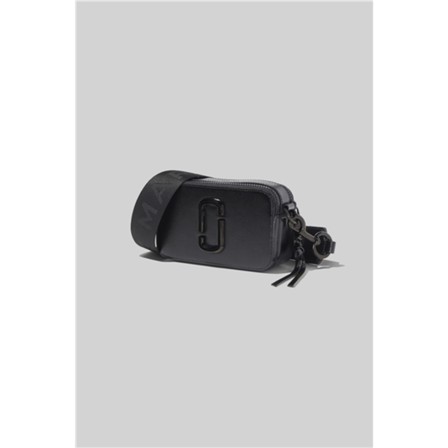 Small camera-style bag in Saffiano leather with an adjustable cross body strap. Features: TM (dyed-to-match). Double-J hardware. Dual top zip closure. Interior and exterior slip pockets. Removable and adjustable webbing strap. Dimensions: 7" L x 2.25" W x 4.25" H 18. Strap Drop Length 25.5".100% Split Cow Leather With PU Coating.