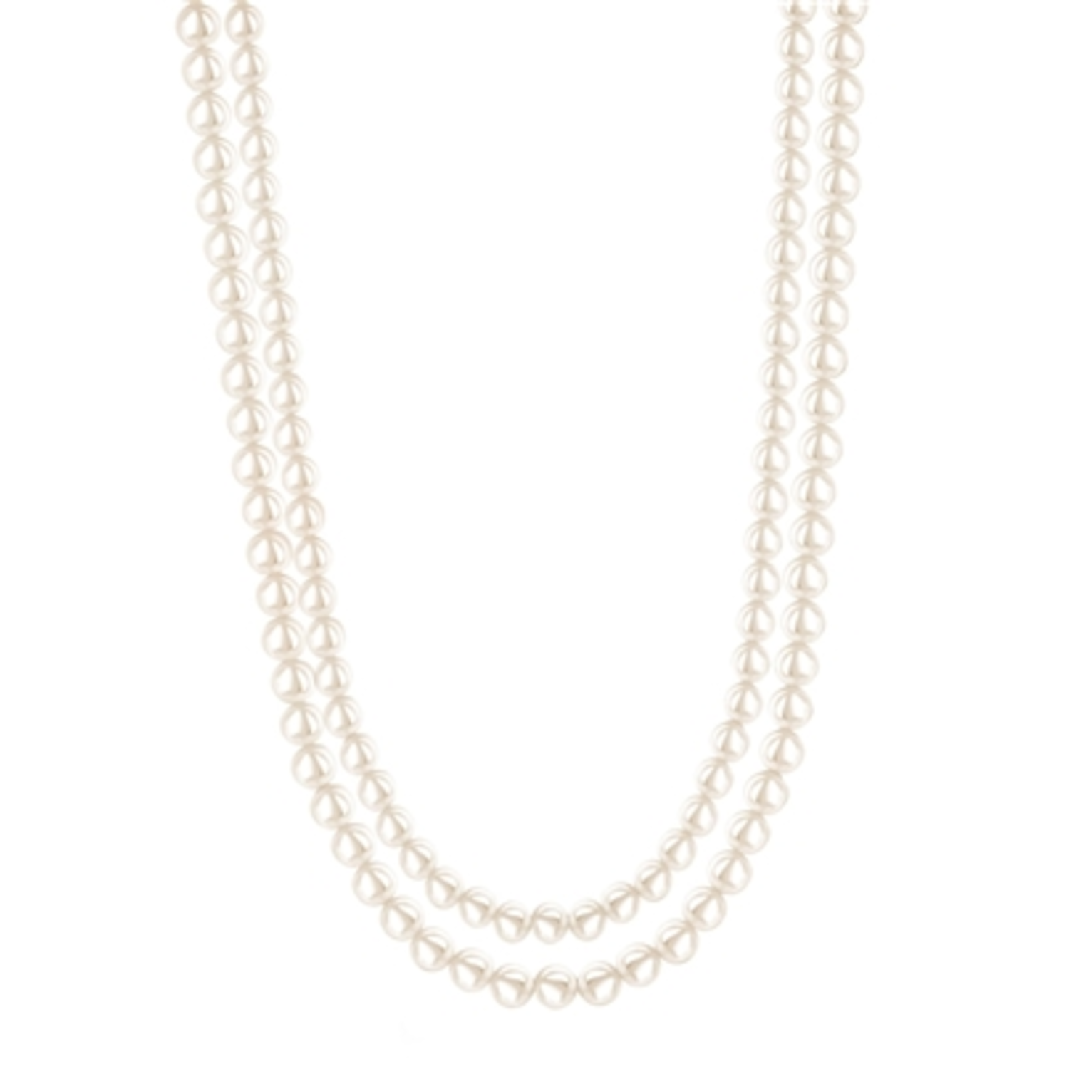 DOUBLE STRAND PEARL NECKLACE, WHITE, 25 INCH