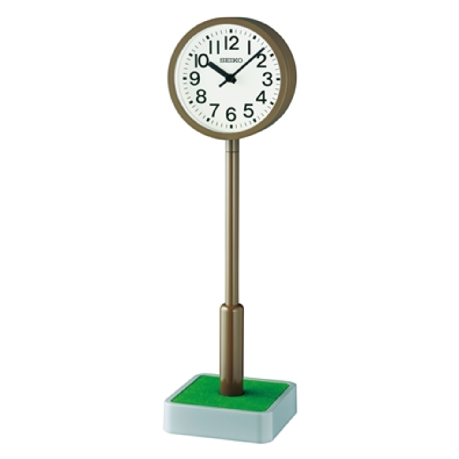 Add a touch of charm to your workspace with the Seiko 12" Metro Replica Park Clock, designed with a fun artificial grass base and mounted on a sleek metal/aluminum pole. This round clock captures the nostalgic feel of a classic park clock, bringing a bit of the outdoors inside. Measuring 12.01 x 3.46 x 3.35 inches, it fits easily on your desk or display case, and its silent operation ensures a peaceful work environment. Each clock includes a 1 AA battery, so you can start enjoying its whimsical charm right away. Perfect for brightening up any office or as a unique gift, the Seiko Metro Replica Park Clock adds a playful touch to any setting.