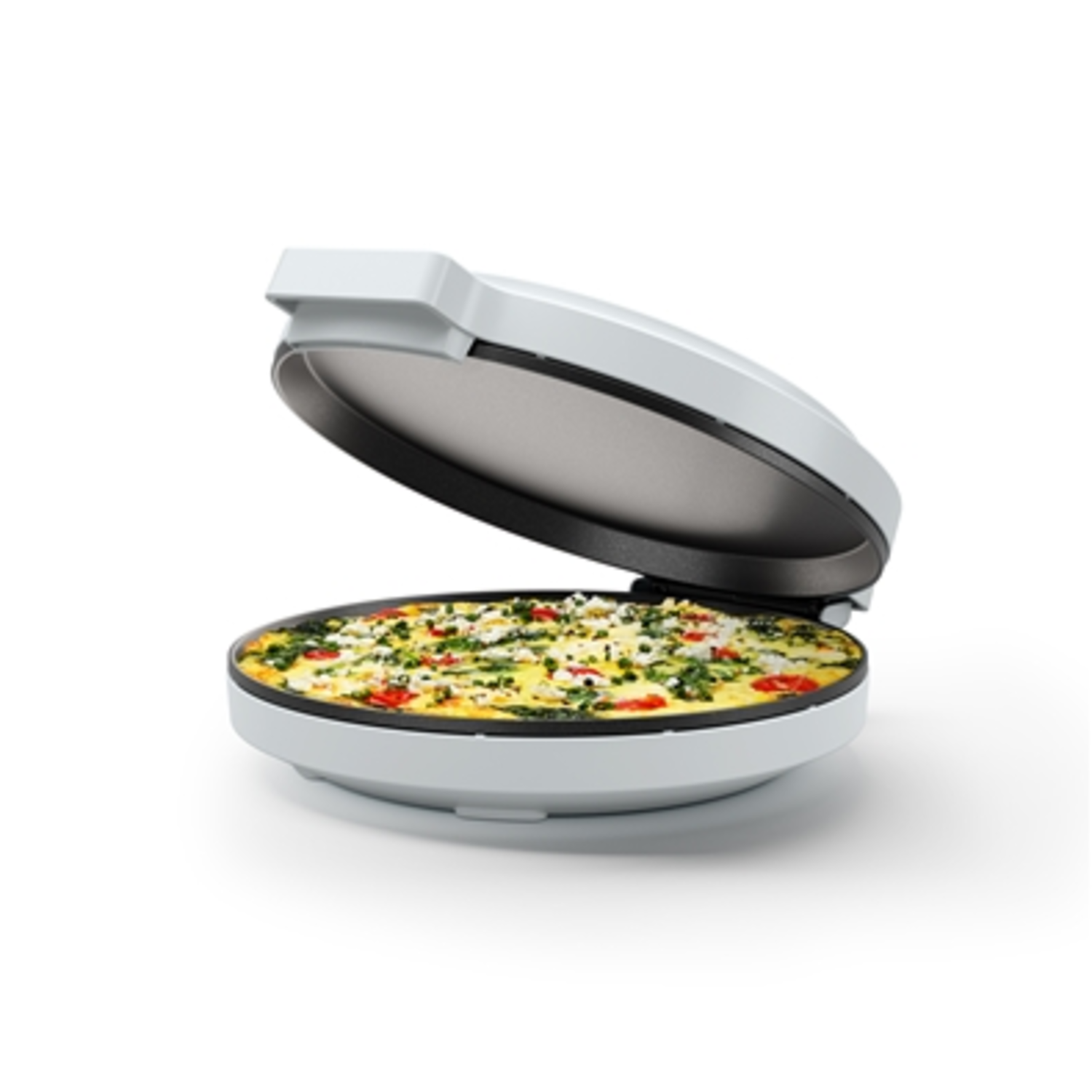 12" cooking area for pizzas, quesadillas, melts, quiches, and more; Indicator lights signal when to start cooking; Nonstick plates to make cleanup effortless; Stylish design looks great on the counter