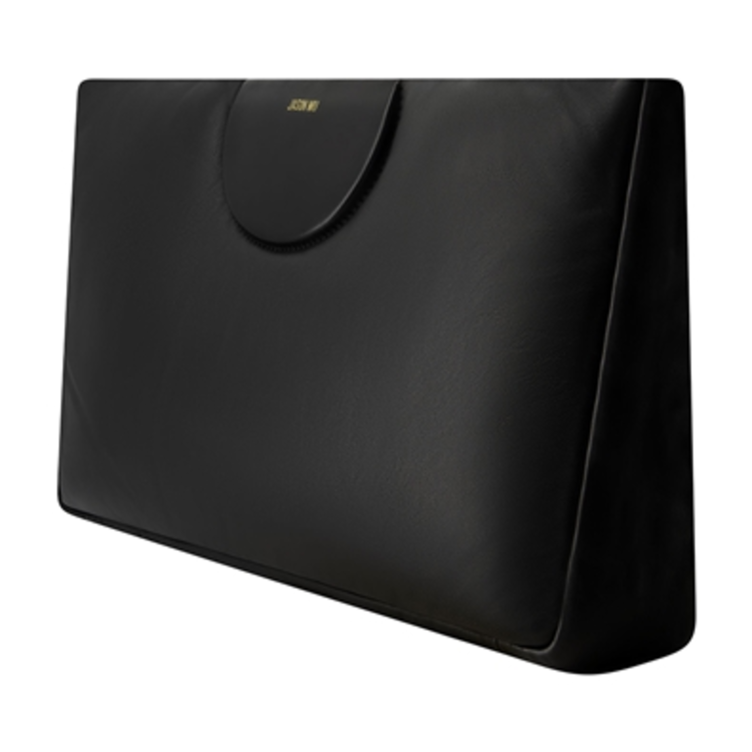 Carry sophistication with this Jason Wu black clutch. Featuring a sleek zip closure, an interior back wall zip pocket for easy organization, and a minimalistic design adorned with the Jason Wu logo, this clutch is perfect for any formal or casual outing. Comes with a white drawstring Jason Wu dust bag to keep it pristine between uses. Ideal for elevating any outfit with timeless elegance-Officially licensed Jason Wu Bag-Gold hardware-Secure zip closure for a chic, streamlined look-Interior back wall zip pocket for added storage-Includes a protective Jason Wu white draw string dust bag 17"Hx 19.5"W -Material Body – 100% Sheep leather-Lining- 100% polyester-Dimension: 9.5H X 16W X 3D-Weight 1 lbs.-Imported