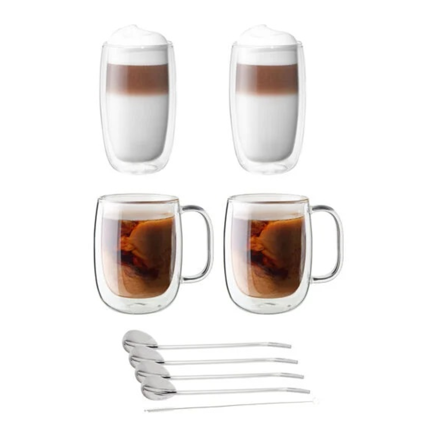 ZWILLING SORRENTO DOUBLE WALL GLASSWARE COFFEE AND BEVERAGE 9PC SET PROMO