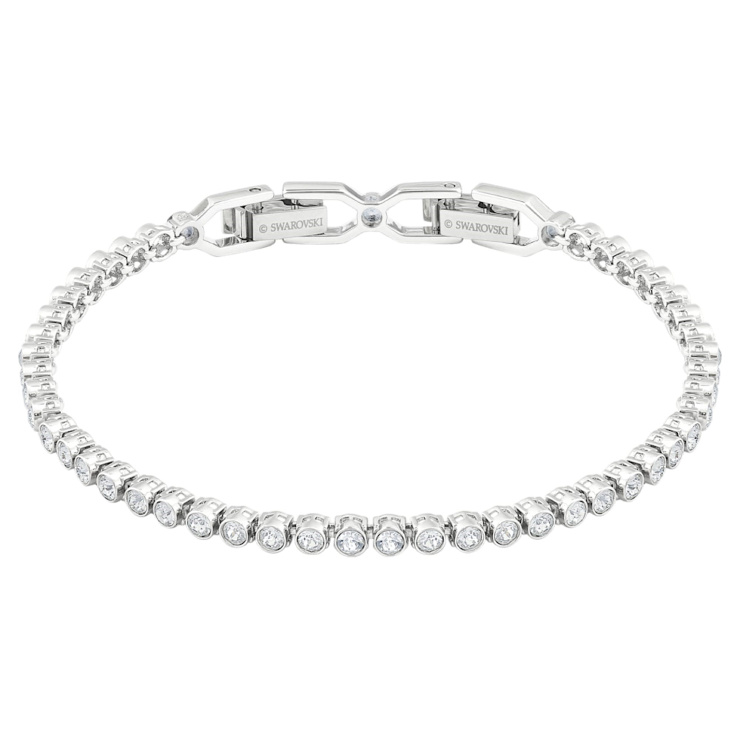A classic bracelet with a gleam that speaks volumes! This delicate strand of bezel-set clear crystals on a rhodium-plated bracelet is very dainty and minimalistic yet makes a bold statement of sheer elegance. It has a secure foldover clasp closure and comes with an extender.