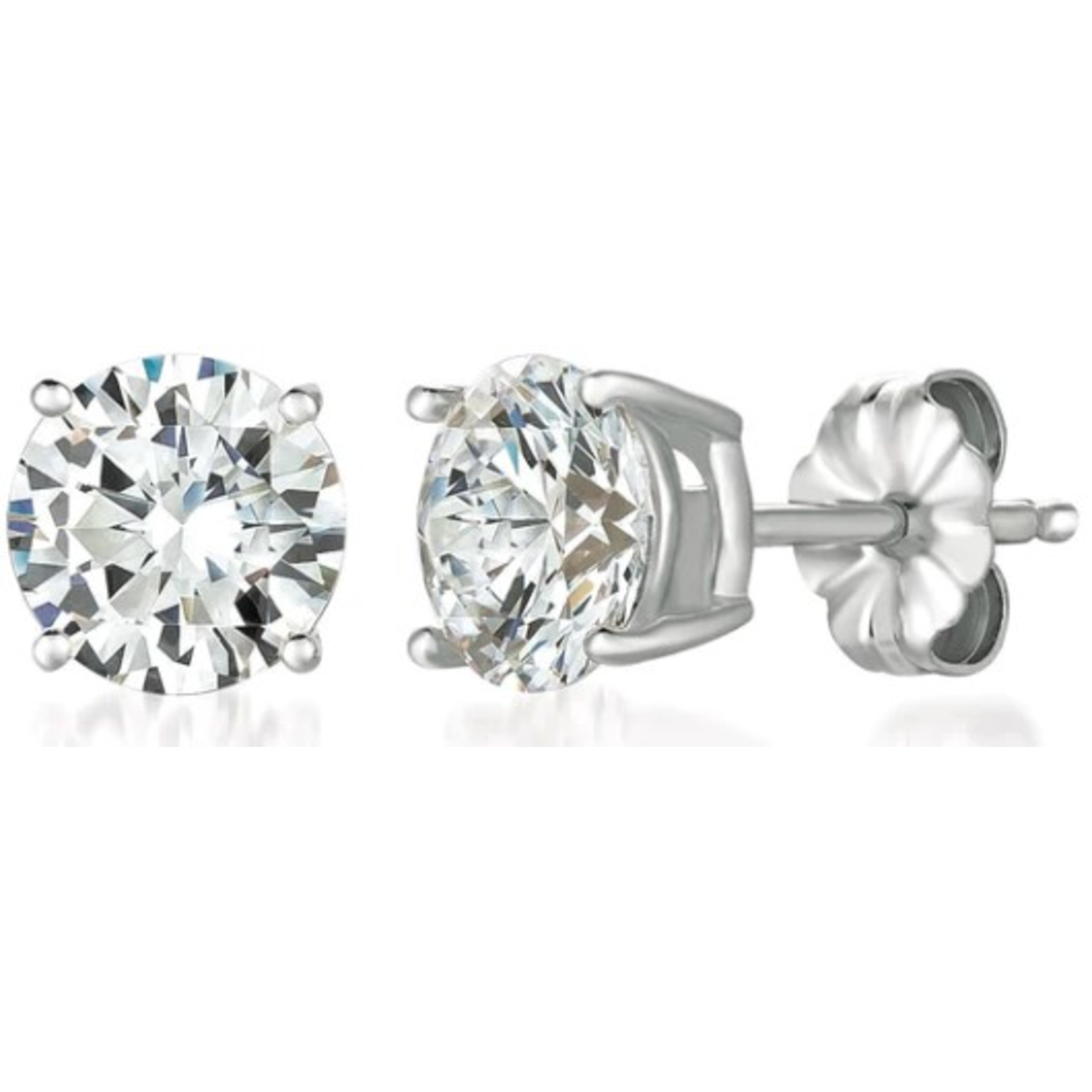 These medium stud earrings feature two 1.5 carat brilliant cut cubic zirconias, for a total weight of 3.0 carats. These earrings are crafted in .925 sterling silver finished in pure platinum, with flawless handset cubic zirconia.
