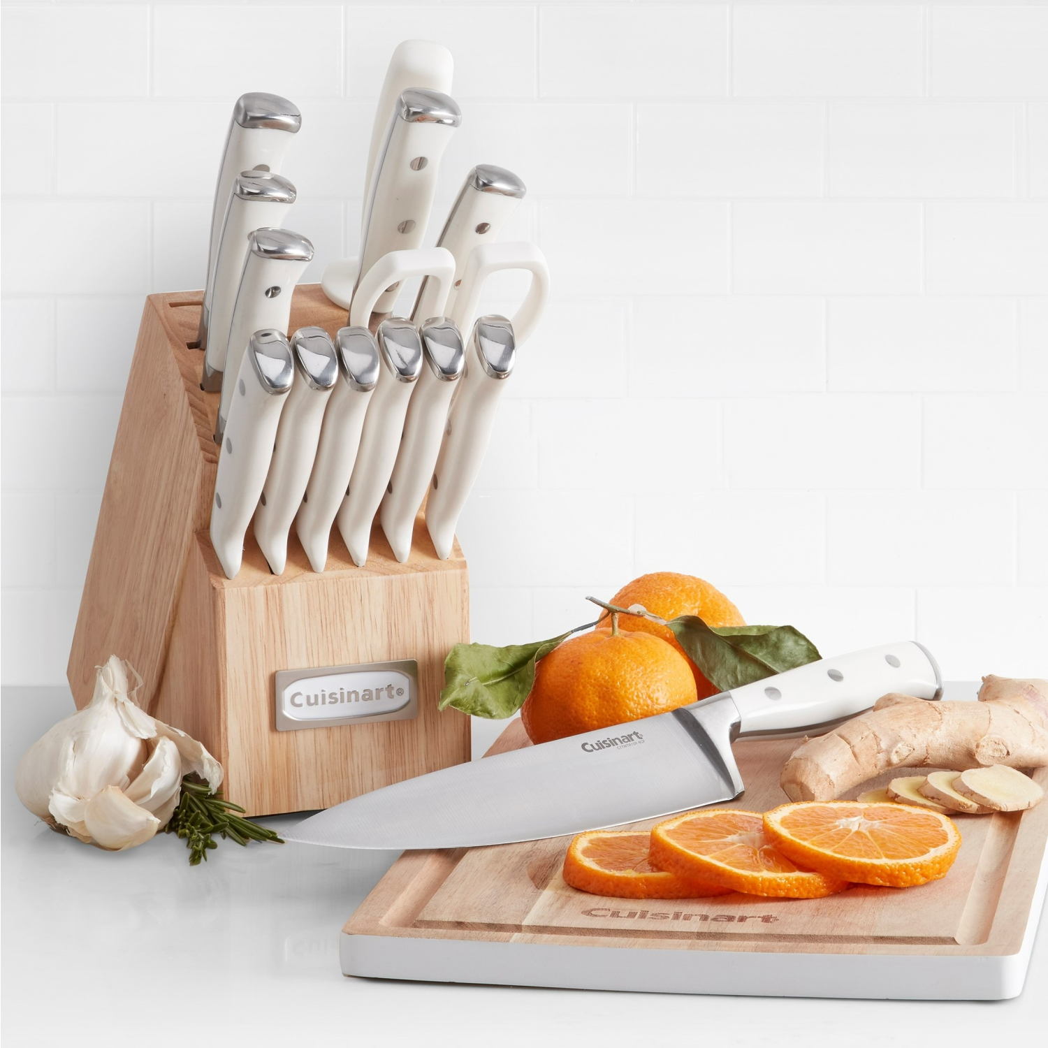 Cuisinart ClassicForged Triple Rivet Cutlery possesses superior high-carbon stainless steel blades for precision and accuracy. Packaged in a 15 piece block set and open stock, these extraordinary knives have tapered ground blades that narrow gradually to an extremely sharp, fine edge.