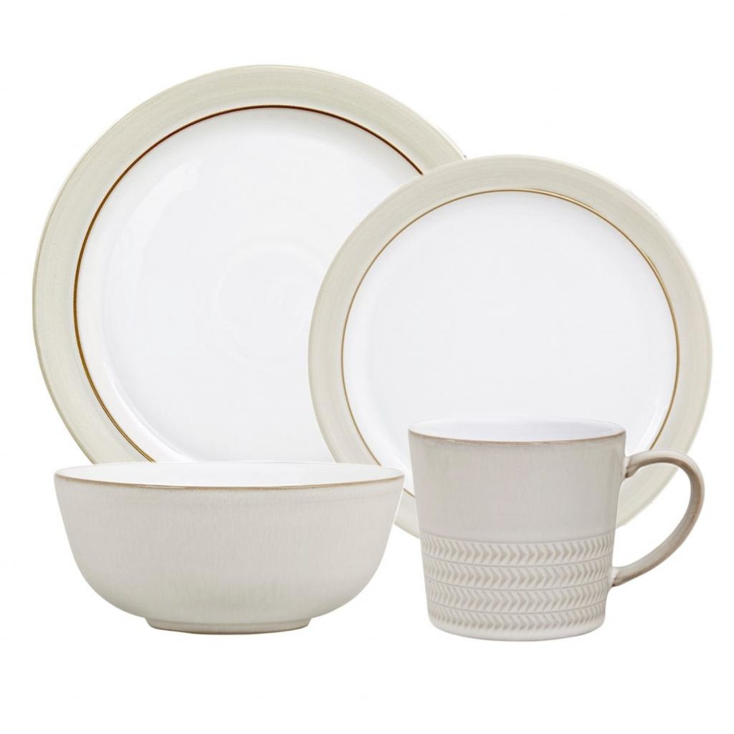 Handcrafted in England, Denby's lovely Natural Canvas Dinnerware offers contemporary style in durable stoneware. This versatile dinnerware boasts a beautifully hand-applied glaze that adds depth and warmth to the sophisticated neutral color palette.