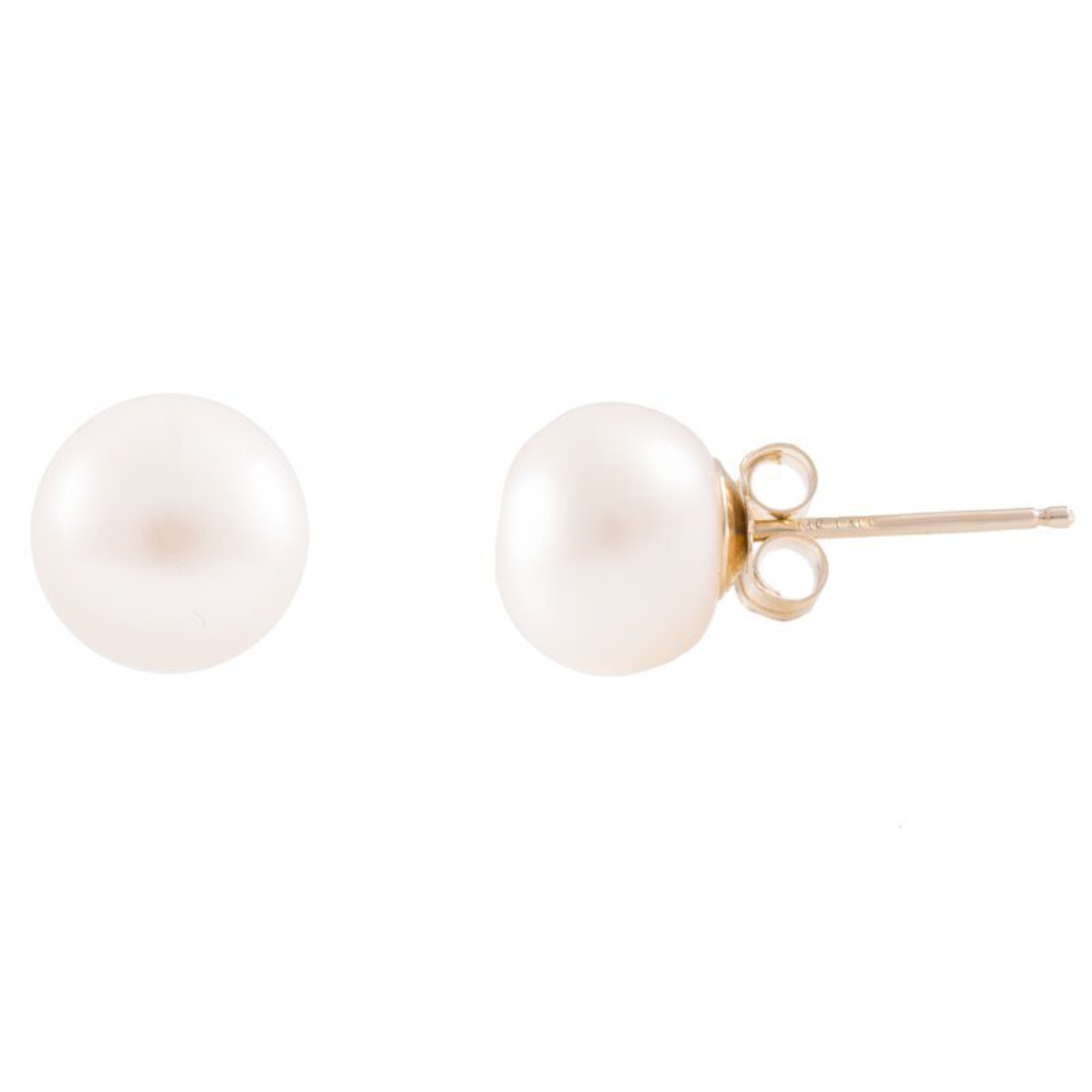 LALI JEWELS 14K YELLOW GOLD WHITE FRESH WATER PEARL STUD EARRING