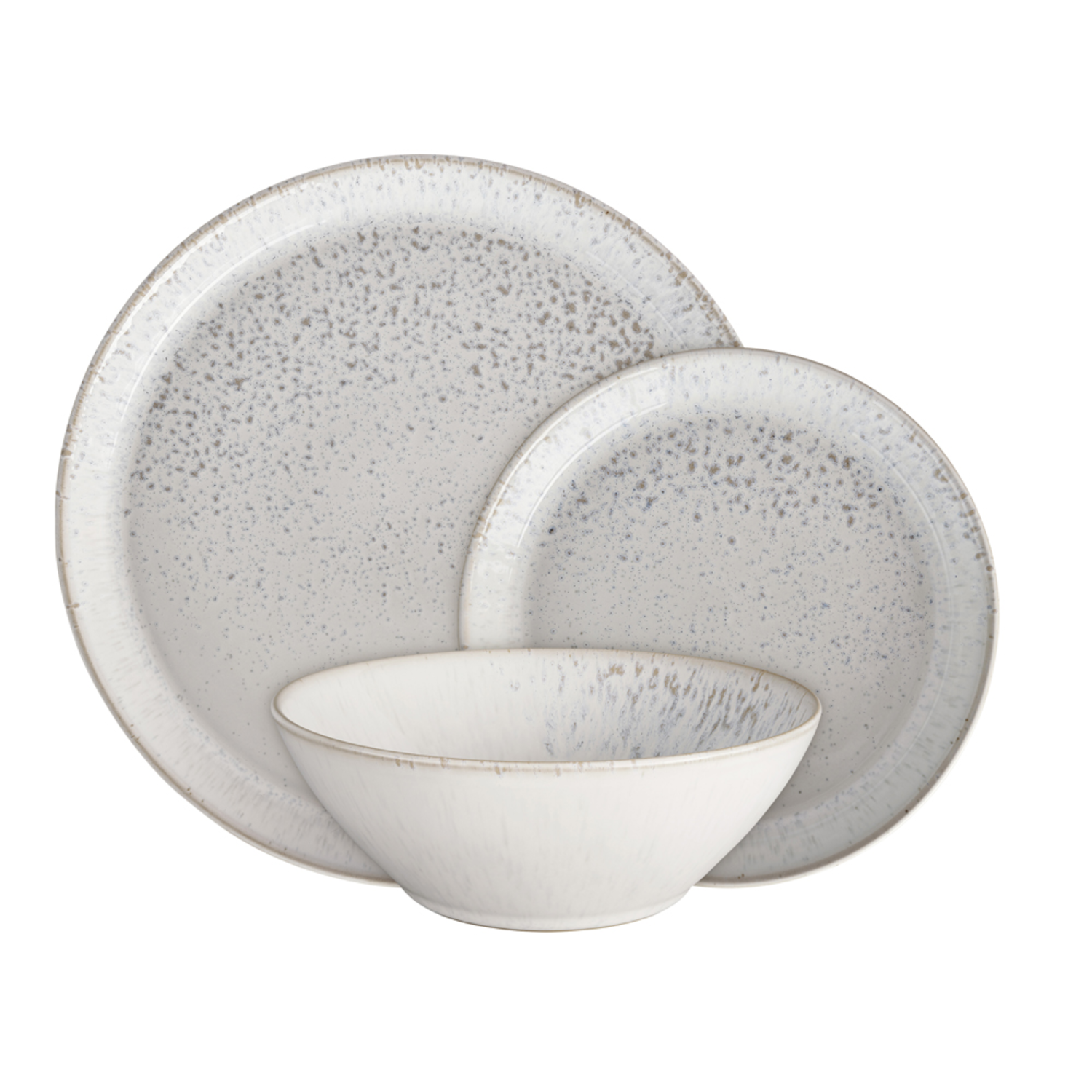 The 12pc tableware set brings together 4 Dinner Plates, 4 Medium Plates and 4 Cereal Bowls, all designed with practically- shaped features and the unique freckling glaze. The sets are both beautiful and versatile so can be used for your everyday set or used separately for other occasions, a set to start off your new collection or add a few new place setting items to your existing items.