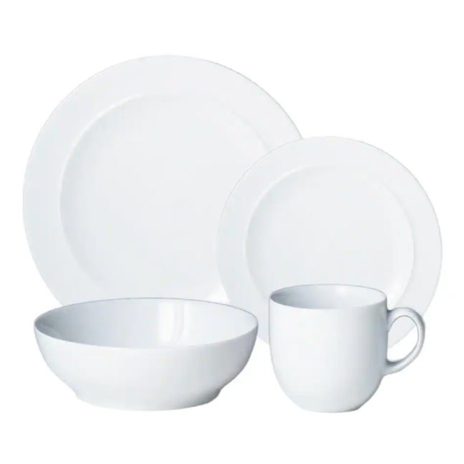A pure staple for every modern home, this super sophisticated collection is both clean and minimal. This white tableware range is crafted from porcelain. Yet this isn't your average porcelain, and like Denby's stoneware it's designed to last. Strong contemporary shapes co-exist alongside fuss-free softer lines - perfect for everything from every day to special occasions. Contains: 1 x Dinner Plate, 1 x Salad Plate, 1 x Cereal Bowl, 1 x Small Mug